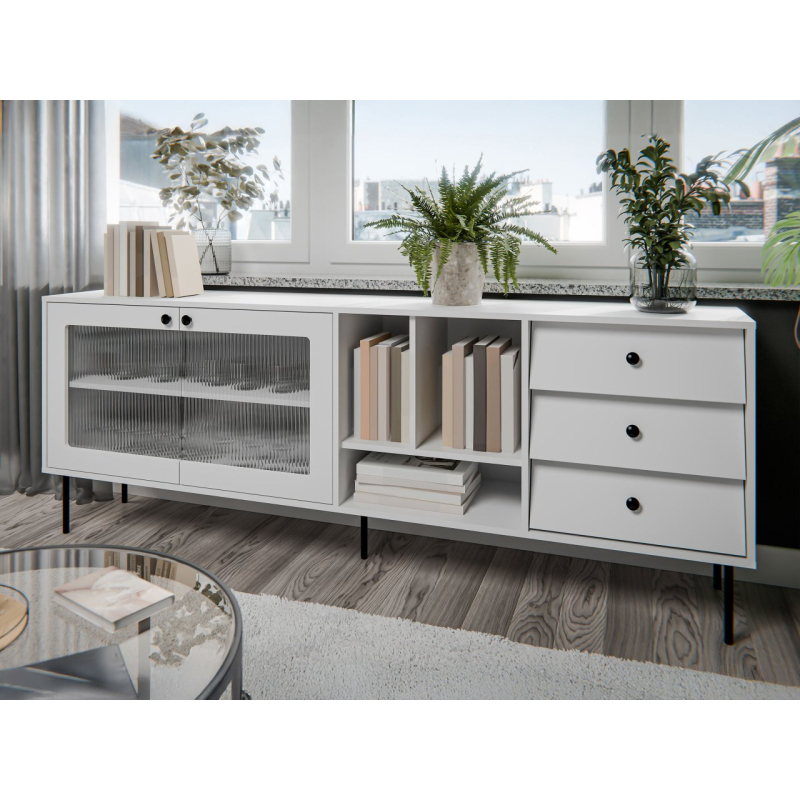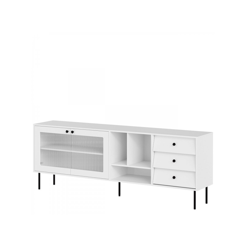 Odlište svůj interiér výběrem komody Aurezi 200 s policemi Jedinečný design spojený s vynikající funkčností udělá dojem v každé místnosti. Elegantní tvar je vyvýšený na štíhlých nohách, což mu dodává lehkost. Moderní komoda nabízí dostatek úložného prostoru. Uvnitř najdete prostorné úložné prostory, několik polic a tři zásuvky. Zajištěna komplexní organizace interiéru. Ideální místo pro schování dokumentů, porcelánu a knih. Široká stolní deska je navíc ideální pro vystavení dekorací, suvenýrů a rostlin.
