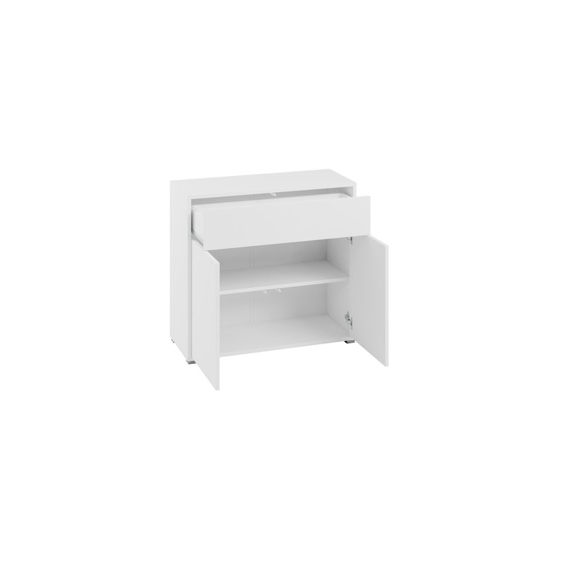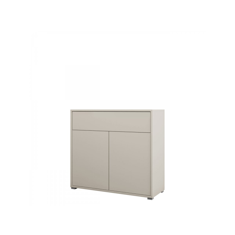 Model je vybaven dvířky, za kterými se skrývají prostorné prostory a jednou zásuvkou. Má také systém otevírání push to open. Světlá barva komody rozzáří okolí a dodá mu jemný nádech. Tato varianta bude perfektně fungovat v obývacím pokoji, ložnici i předsíni.