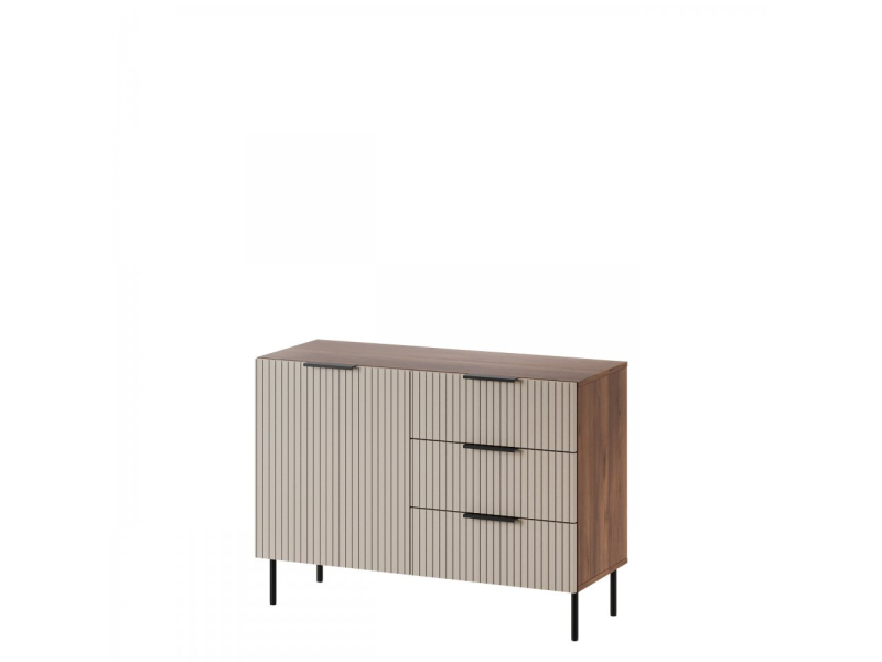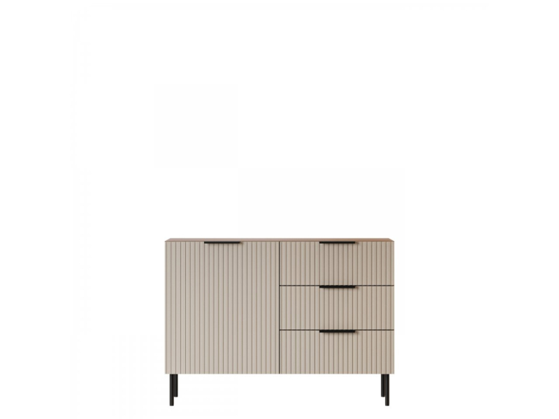 Moderní komoda Seretio SR02 je ideální do obývacího pokoje, ložnice nebo chodby. Frézované přední strany dodávají jemný dekorativní nádech. Jejich kašmírová povrchová úprava dokonale doplňuje současné trendy v interiéru.
