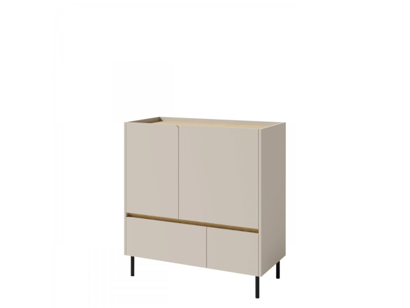 Horní část komody obsahuje prostorné skříňky, které jsou ideální pro uložení větších předmětů, zatímco spodní zásuvky poskytují rychlý a snadný přístup k menším předmětům. Toto uspořádání zvyšuje pohodlí a umožňuje lepší organizaci.