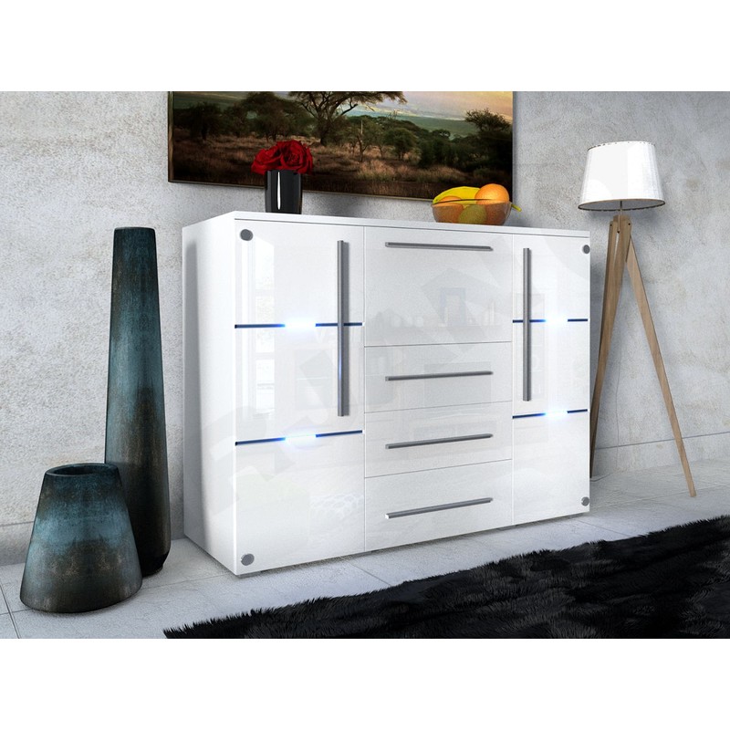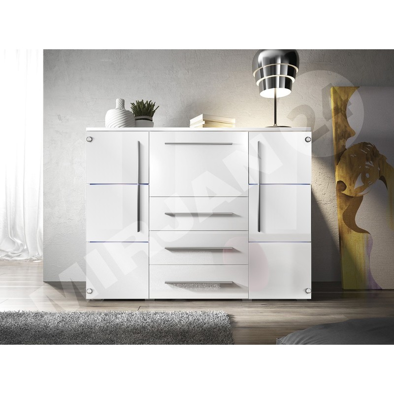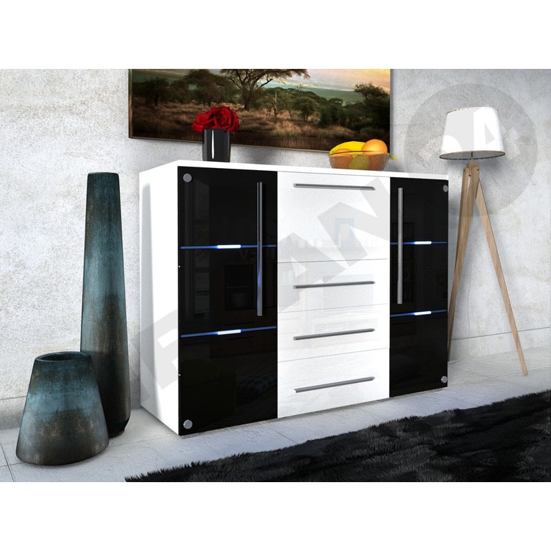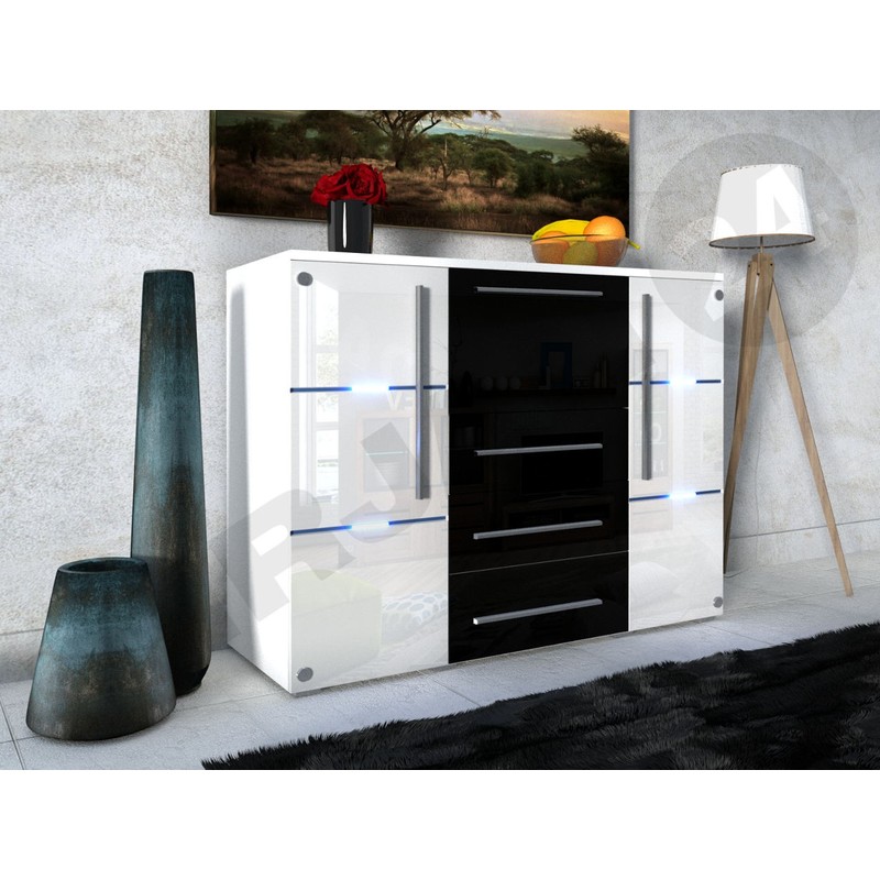 Komoda Brita je kus nábytku pro ty, kteří potřebují spoustu zásuvek pro uskladnění. Kombinace módních barev mu dodává jedinečný vzhled. Lesklé čelo činí z komody jedinečný dekorační prvek obývacího pokoje, ložnice a předsíně. Dokonale se bude hodit k jinému nábytku do obývacího pokoje nebo k naší nástěnné skříňce Brita ze stejné kolekce.