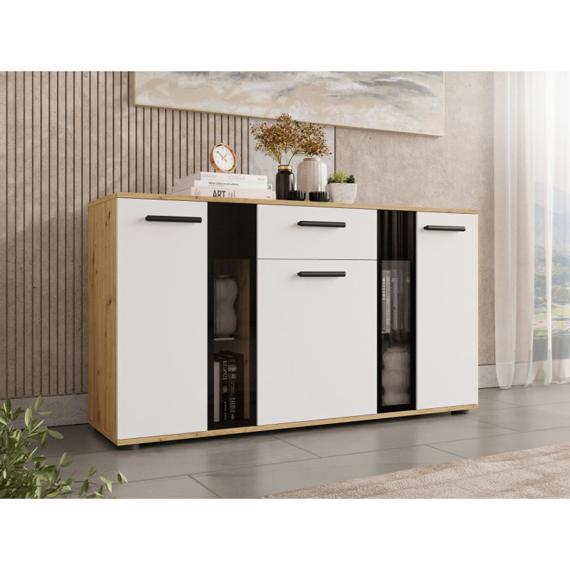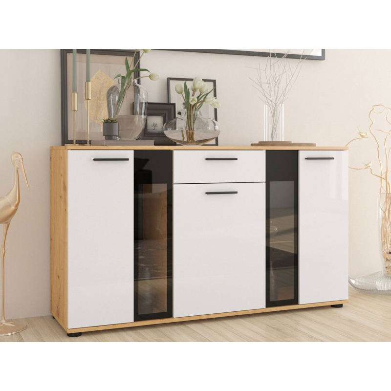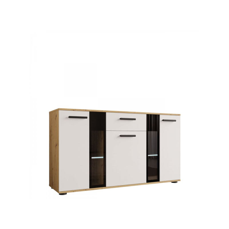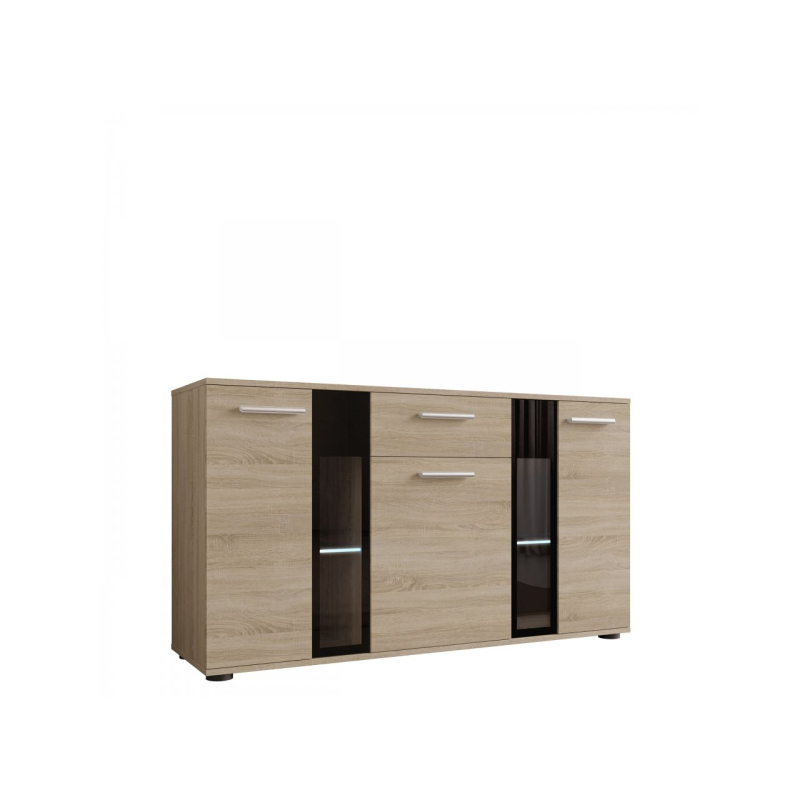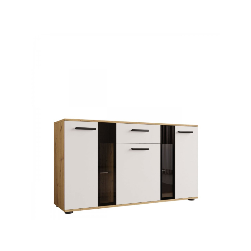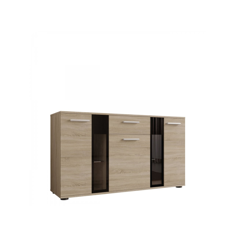 Stylová komoda Fiesta může být dekorativní ozdobou každé místnosti. Kromě krásného vzhledu je také velmi praktická a umožní Vám pohodlné uložení mnoha přebytečných věcí. Zakryté části komody Vám poskytnou možnost schování předmětů, které nechcete ukazovat, zatímco prosklené části Vám poskytnou možnost vystavit knihy nebo jiné dekorační předměty. Komoda je vyrobena z laminované desky, která je odolná vůči poškrábání. Hrany komody jsou zakončeny PVC hranou. V kombinaci s jiným nábytkem můžete vytvořit originální zařízení v každé místnosti.