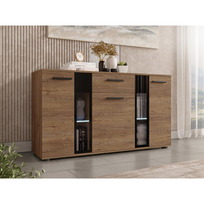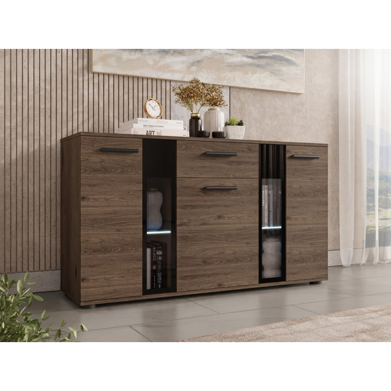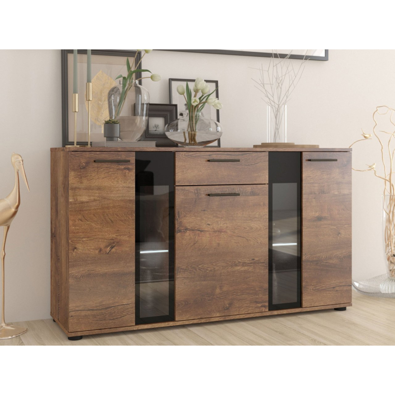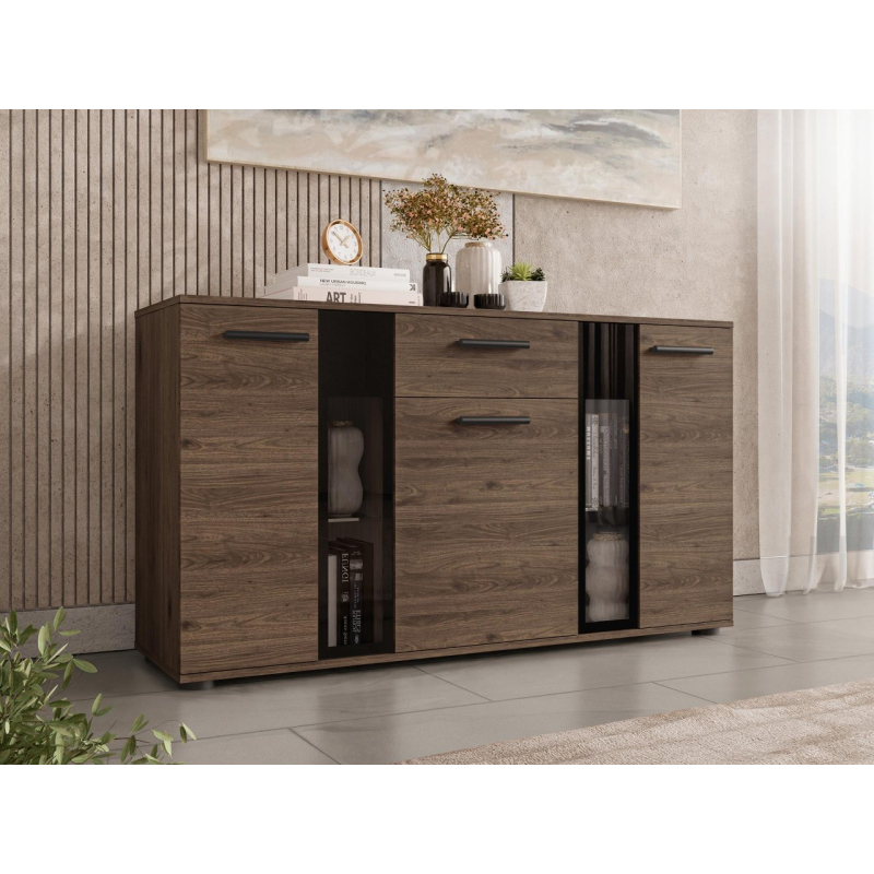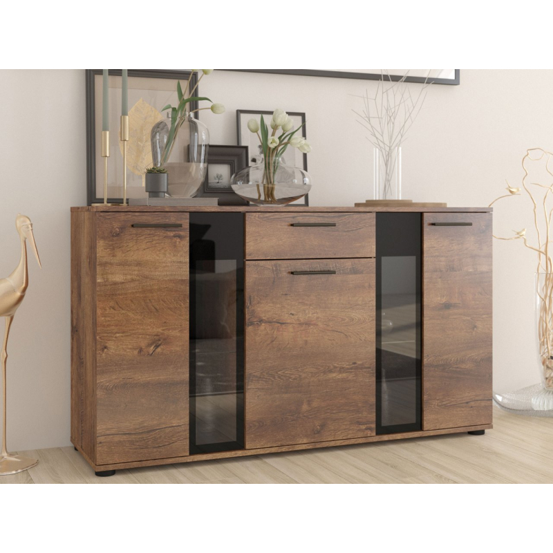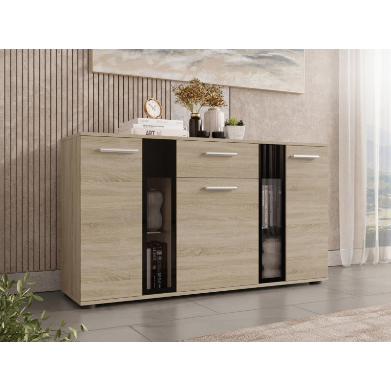 Stylová komoda Fiesta může být dekorativní ozdobou každé místnosti. Kromě krásného vzhledu je také velmi praktická a umožní Vám pohodlné uložení mnoha přebytečných věcí. Zakryté části komody Vám poskytnou možnost schování předmětů, které nechcete ukazovat, zatímco prosklené části Vám poskytnou možnost vystavit knihy nebo jiné dekorační předměty. Komoda je vyrobena z laminované desky, která je odolná vůči poškrábání. Hrany komody jsou zakončeny PVC hranou. V kombinaci s jiným nábytkem můžete vytvořit originální zařízení v každé místnosti.
