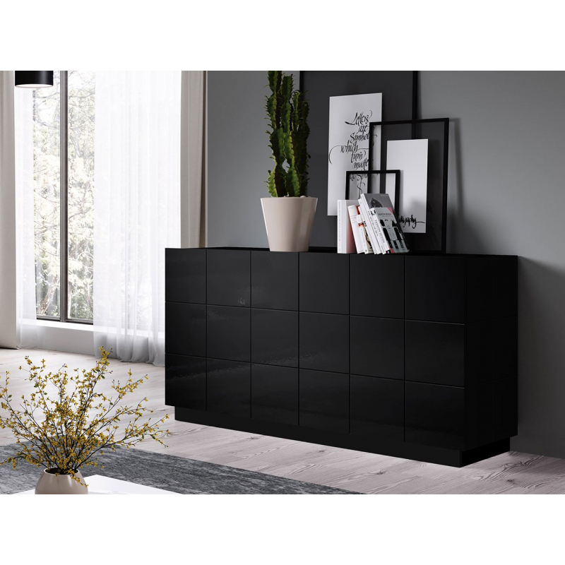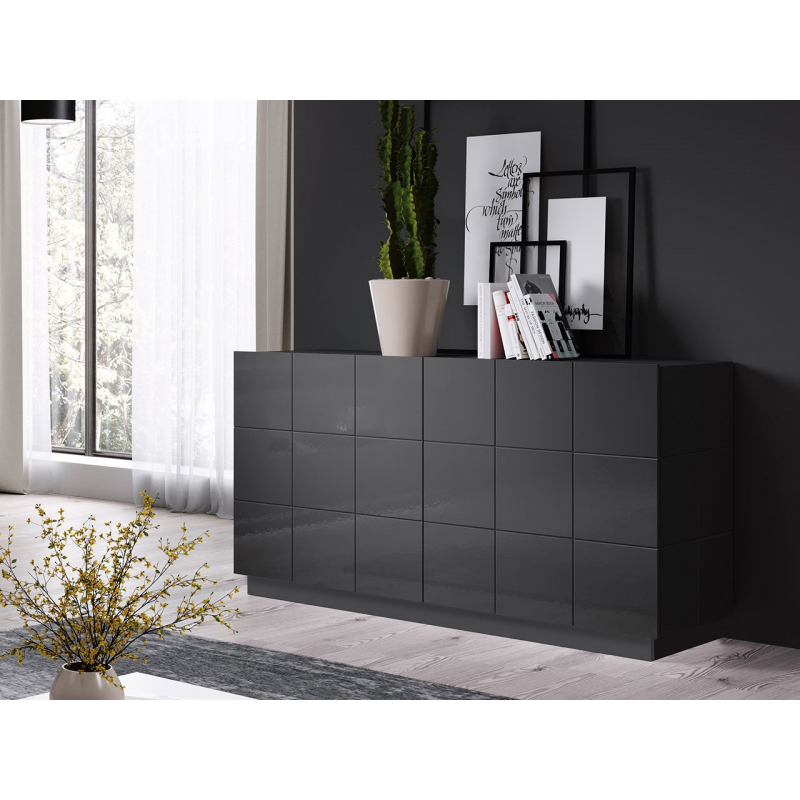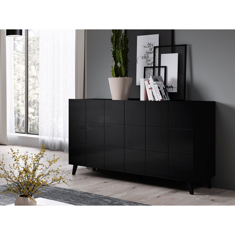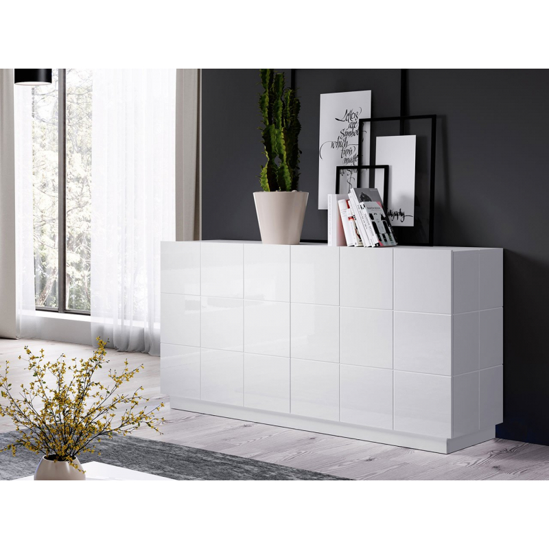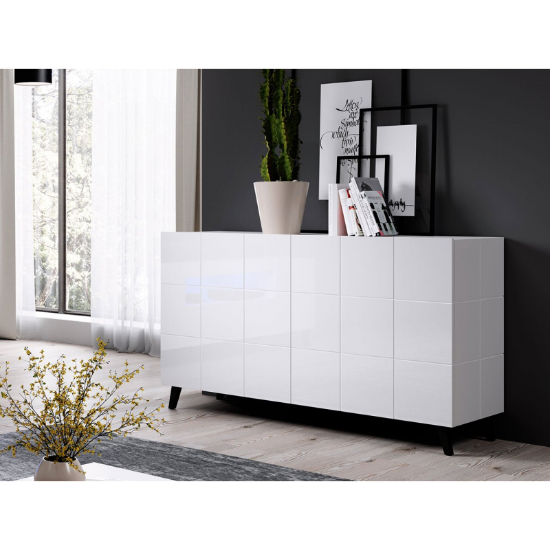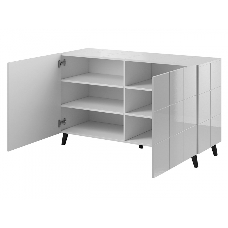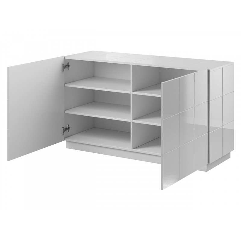 Uvnitř komody jsou řady prostorných polic, které lze využít pro uložení různých předmětů. Slavnostní nádobí, ubrusy a dekorace, to vše si najde své místo v této moderní komodě.