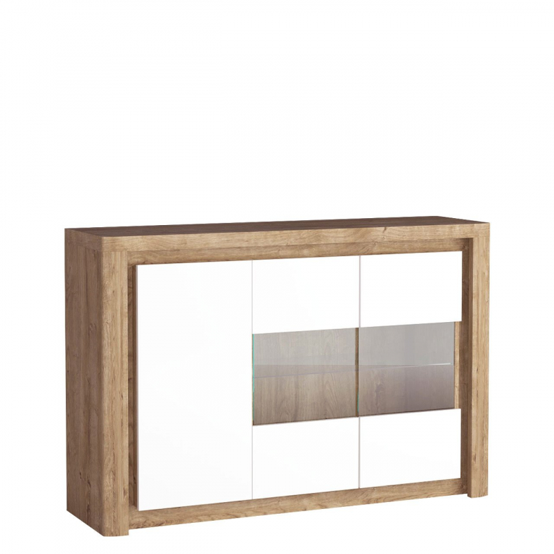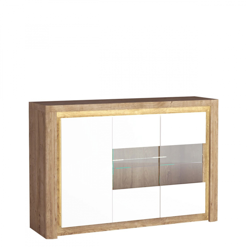 Komoda Domardon DM03 má skříňku s vnitřní policí a vitrínu s LED osvětlením.