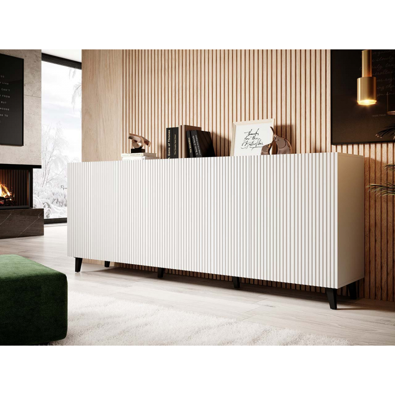 Komoda 200 Sinenko nesmí chybět v moderním interiéru Vašeho domova. Navzdory minimalistickému vzhledu a jednoduché formě nábytku vám vzhled přední části zůstane dlouho v paměti. Uvnitř má komoda až 8 uzavřených prostorných polic. Dá se do ní dát spoustu věcí jako sezónní dekorace, doklady, dětské hračky, ubrusy a zásoba svíček. Na horní plochu komody můžete naaranžovat ozdoby, figurky, popřípadě se tam rozhodnete mít televizor. Rozhodnutí je na vás.