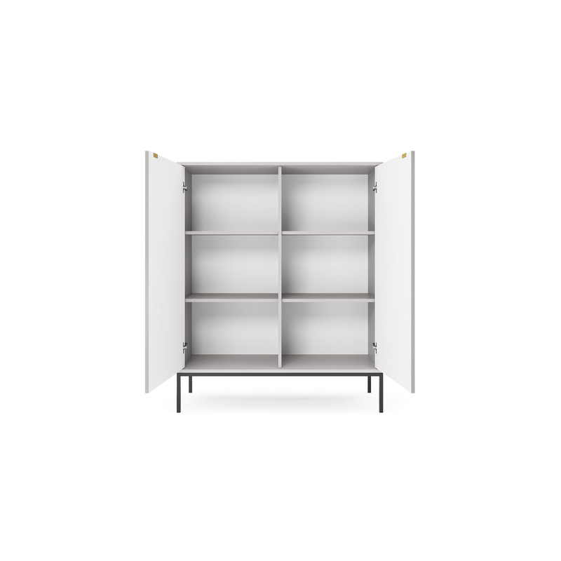Vnitřek vysoké komody také nezklame! Naleznete v ní šest prostorných poliček, které můžete využít jako prostor pro nejrůznější předměty. Sady nádobí, dokumentů nebo drobností. Na druhé straně, horní část nábytku je ideálním prostorem pro dekorace! Vonné svíčky, rostliny v květináčích nebo jiné dekorace. To vše v kombinaci s robustními materiály. Proto jsme si jisti, že koupi této komody do vašeho obývacího pokoje nebudete litovat!