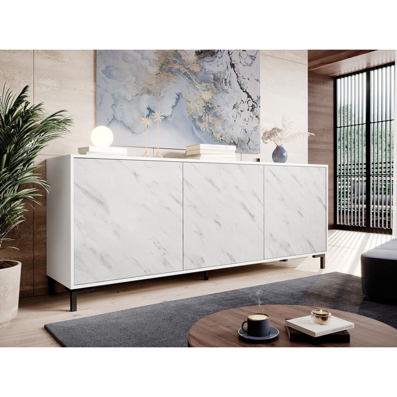 Díky módní barvě čel a vysokým nohám v černé barvě bude komoda také zajímavou ozdobou místnosti. Komoda je navíc vybavena systémem otevírání PUSH TO OPEN, který podtrhuje její moderní charakter.