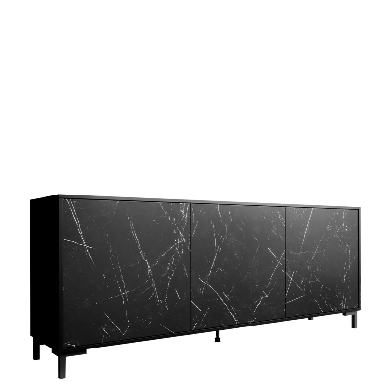 Komoda Sopeleto 3D 200 je návrh, který lze použít jak v obývacím pokoji, tak v předsíni nebo ložnici. Je vybaven šesti prostornými policemi umístěnými ve třech skříňkách.