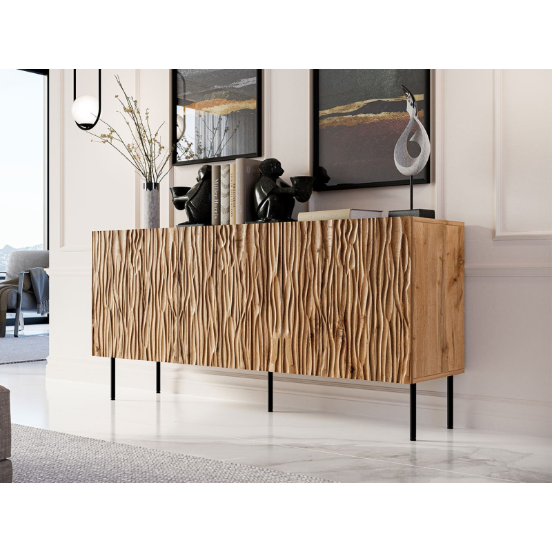 Moderní interiéry vyžadují jedinečné prostředí. Komoda do obývacího pokoje Lameller 152 je ideální volbou pro místnosti s charakterem. Zajímavý design upoutá pozornost originálními vzory na přední straně. Kapacita a styl jsou jejími hlavními přednostmi. Osvědčí se jako základna pro úložné prostory i jako místo pro dekorace.