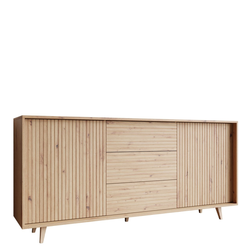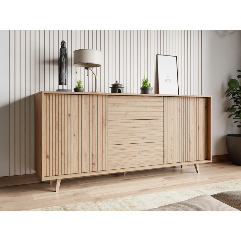 Vytvořte v interiéru přirozenou atmosféru. Široká komoda Trikso 2D3SZ je model, se kterým vytvoříte interiér plný harmonie a klidu. Ideálně zapadne do mnoha zajímavých designů, a to jak těch s nádechem klasiky, tak i modernějších uspořádání.