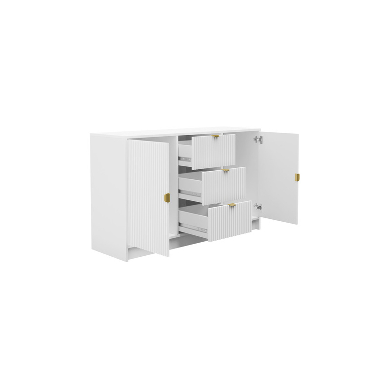 Velká komoda se zásuvkami a skříňkami Razimo 2D3SZ je domácím úložným pomocníkem. Prostorné úložné přihrádky poskytují dostatek místa pro oblečení, sváteční ubrusy a dokonce i sezónní dekorace. V prostorném interiéru komody je také dostatek místa na nádobí, křišťálové sklenice a skříňku s příbory.