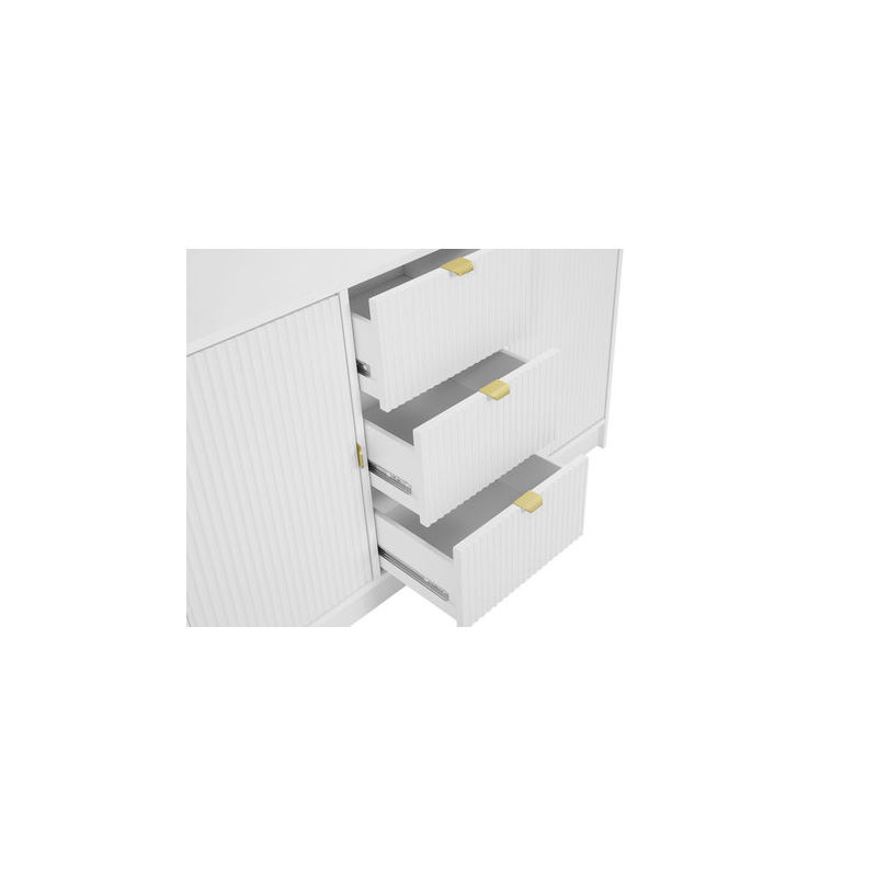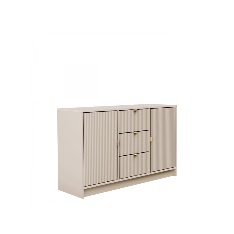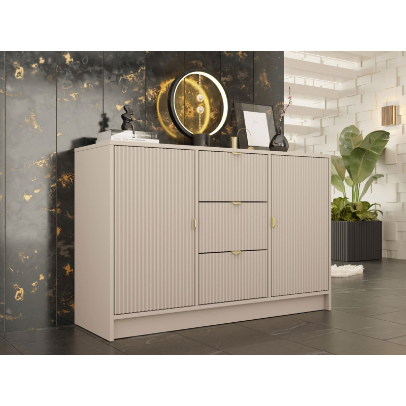 Za zmínku stojí také stylový vzhled tohoto kusu nábytku. Originální textura čelních ploch mu dodává na půvabu. Symetrické drážky jsou střídmým, ale výrazným designovým akcentem. Skvěle se hodí do moderních, loftových, ale i glamour interiérů.