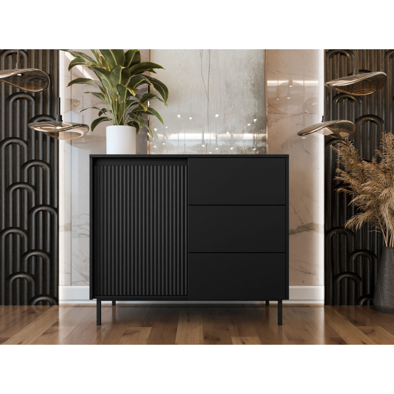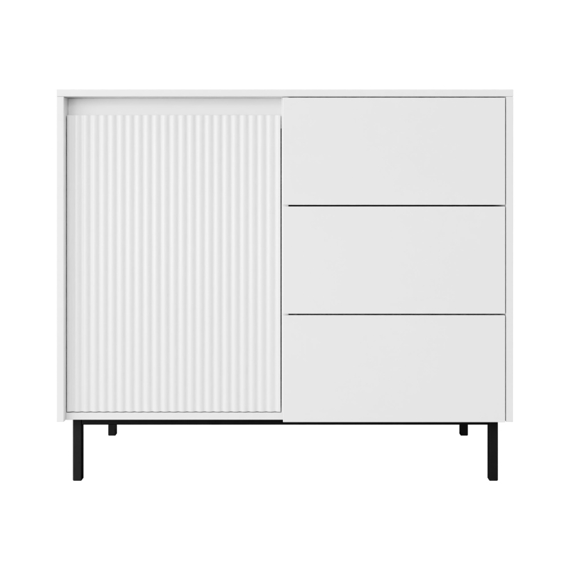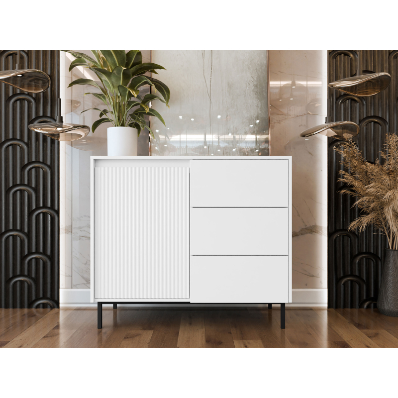 Pokojová komoda Samker 1D3SZ je vkusná nabídka plná elegance a třídy. Vyniká svým moderním designem. Frézovaná čela dominují designu interiéru, a tak zde nemohla chybět. V kombinaci se subtilními nožičkami vytváří skvělou nabídku do obývacího pokoje, ložnice i předsíně. Přemýšlíte, zda se bude hodit ke stylu vašeho pokoje? Nebojte se! Komoda Samker 1D3SZ na nožičkách zapadne do každého stylu!