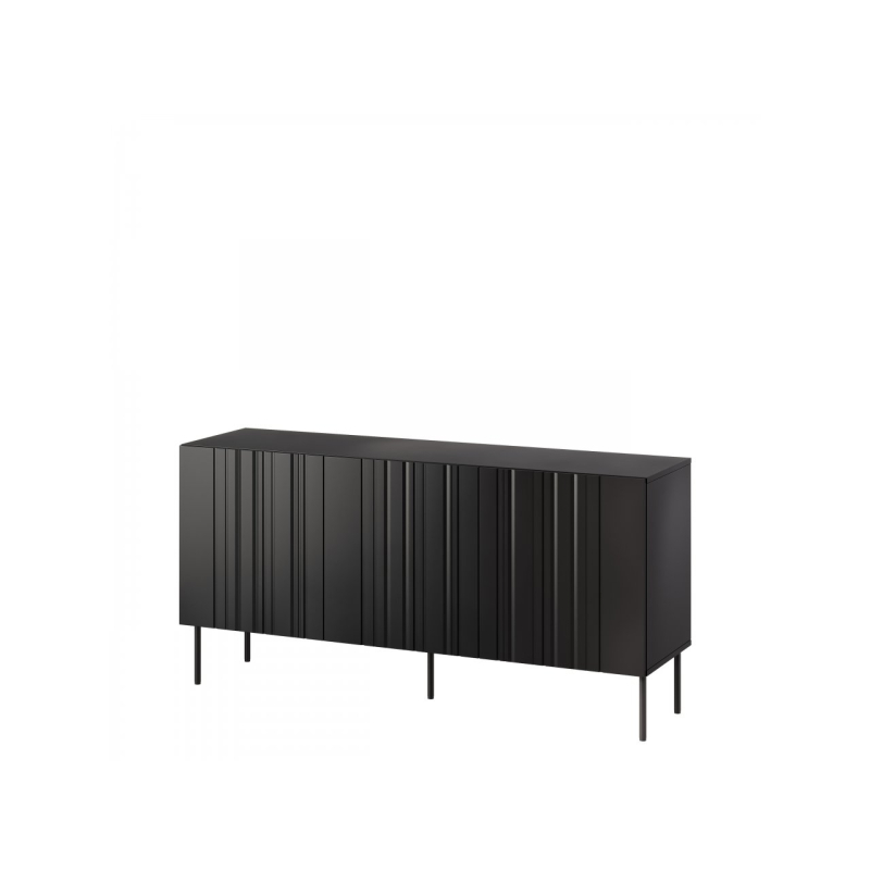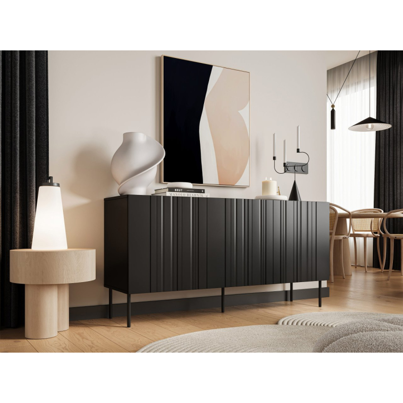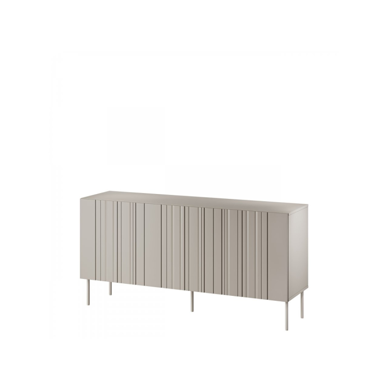 Elegantní široká skříňka Mlerk 150 3D vyniká svým minimalistickým designem. Dokonale se hodí do mnoha interiérových designů. Jemné dekorace na čelech dodávají skříňce s nožičkami charakter a jedinečnost. Tvar je vyvýšen na štíhlých nohách, což dodává nábytku styl a lehkost. Model nabízí dostatek úložného prostoru, který vám umožní mít doma pořádek. Široká stolová deska je skvělým místem pro různá dekorativní vystavení, jako jsou: rostliny v květináčích, svíčky, rámečky na fotografie nebo suvenýry z dovolené.
