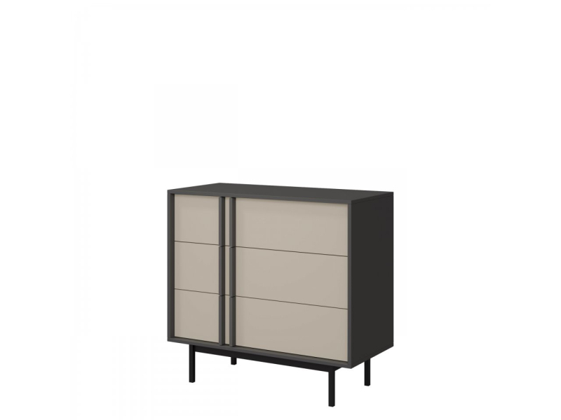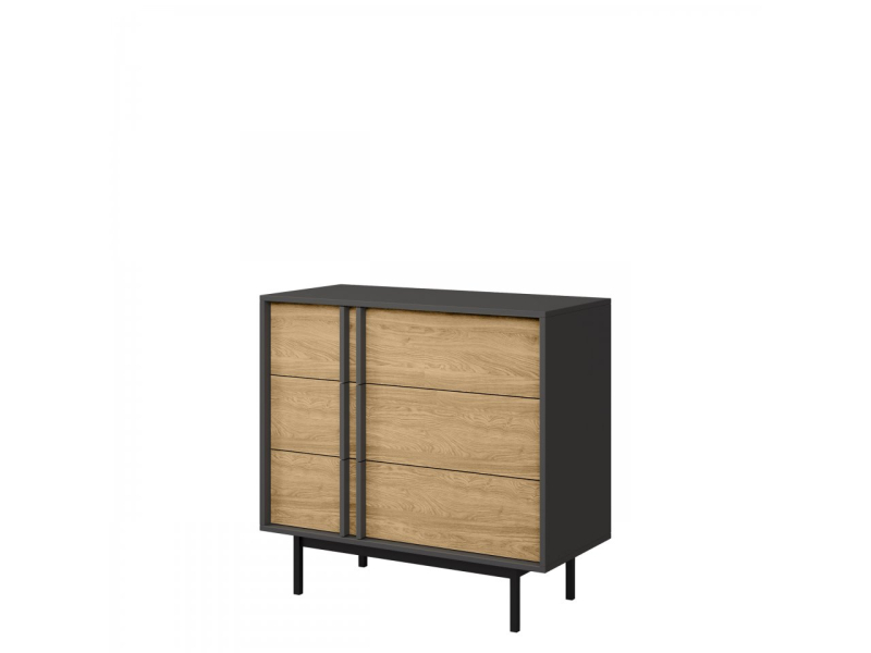 Tato komoda nabízí dostatek organizačního a dekorativního prostoru. Tři prostorné zásuvky pojmou vaše oblečení a prádlo. Stylové úchyty dodávají komodě jedinečný charakter. Tento model má také široký vrch, ideální pro tematickou výzdobu, vázu s květinami nebo fotorámečky.