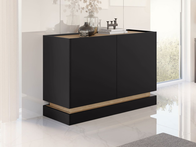 Komoda Arlotekis K120 2D vyniká také svým prostorným interiérem. Velké police nabízejí dostatek místa pro uložení různých doplňků – od oblečení a nádobí až po sezónní dekorace. Umístěná na dekorativním podstavci se stává elegantním doplňkem, který bez námahy zapadne do stylu obývacího pokoje, jídelny i chodby a dodá prostoru šarm.