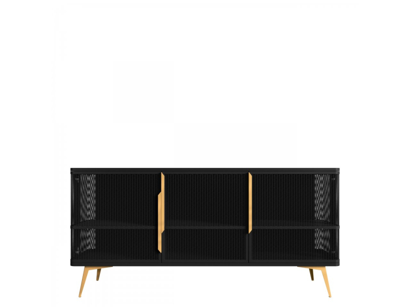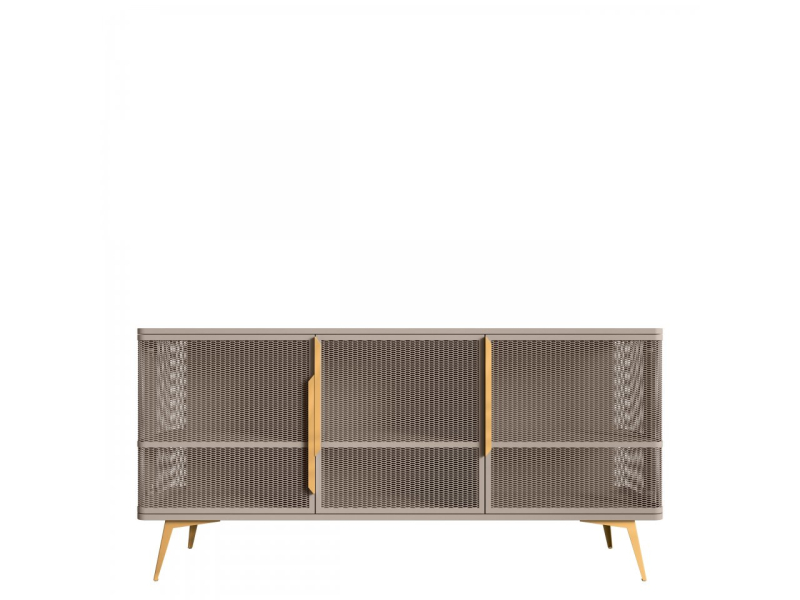 Moderní komoda Bezor 3 s dvířky se vyznačuje minimalistickým designem, který dokonale ladí s průhlednými čely. Tento design dodává interiéru lehký a elegantní charakter. Ocelové nohy a úchytky podtrhují moderní design komody a zajišťují její stabilitu a odolnost.