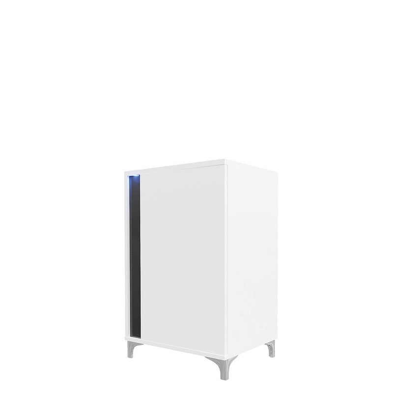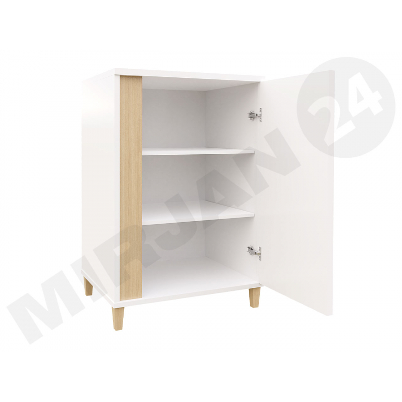 Moderní design v kombinaci s funkčností. Toto je stručná charakteristika vlastností, kterými se komoda Anrok na nožičkách vyznačuje. Světlé barvy nábytku jsou stylově kombinovány s geometrickým dekorem v kontrastní barvě, což dodává zařízení místnosti dynamiku.