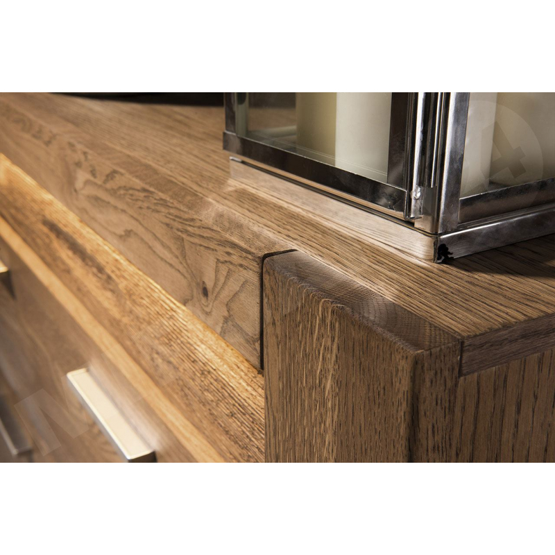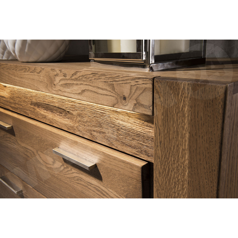 - čelní strana: masivní dubové dřevo + podsvětlená vkladka z leštěného dřeva je standardem,
