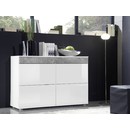 Moderní komoda Hemnes je ideální pro obývací pokoj. Komoda kombinuje dva módní akcenty: nadčasovou bílou lesklou a dekor v barvě napodobující surový beton. Moderní přízvuk nábytku je také ovlivněn zachovaným minimalismem, který se projevuje nedostatkem tradičních úchytů. Interiér komody je vybaven prostornými skříňkami, které poskytnou dostatek prostoru pro uložení bytových doplňků.