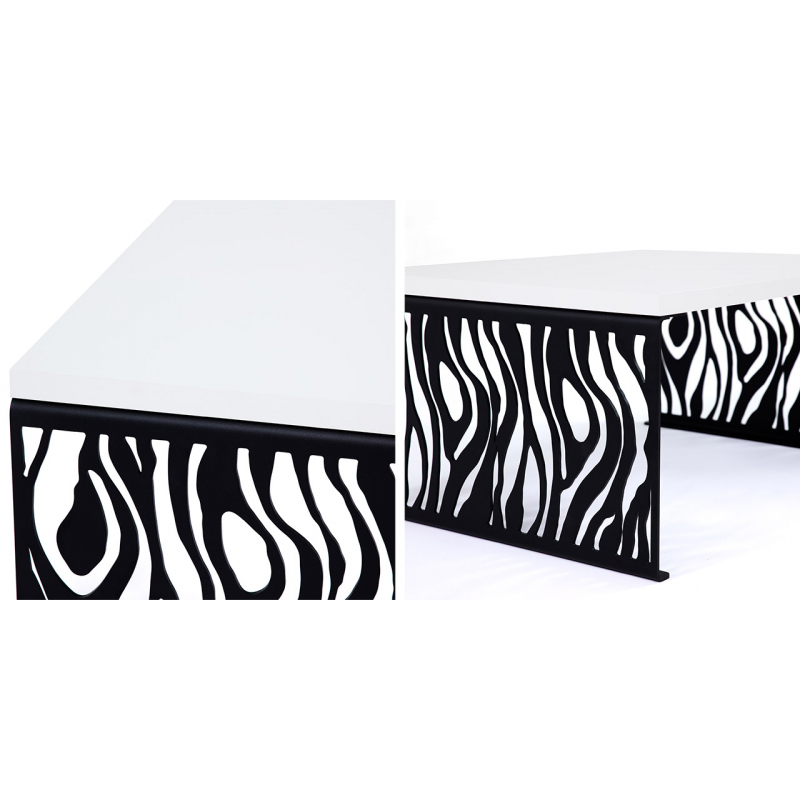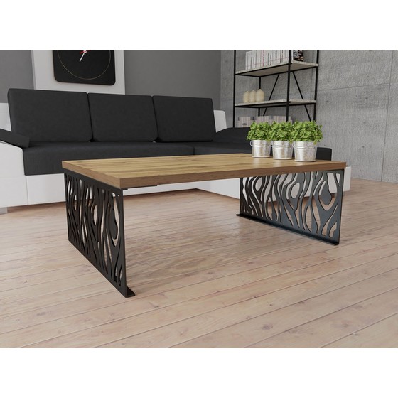 Moderní konferenční stolek Luwr 01 je modelem, který odporuje vzorům tradičních konferenčních stolků. Základ stolu tvoří dvě nohy z kovu, jehož syrový charakter byl narušen ozdobnými akcenty na principu vitráže. Nohy z těžkých kovů nabývají lehké a umělecké podoby. A vytvořené vzory byly zvýrazněny černou matnou barvou, která byla získána v procesu práškového lakování.
