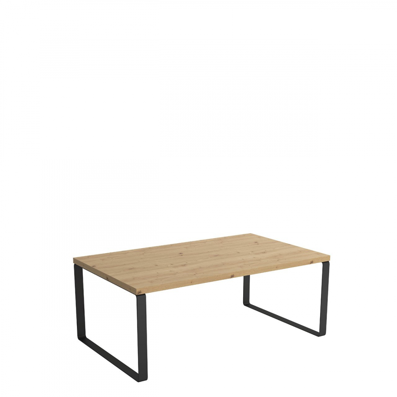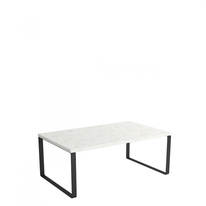 Osvědčenou formou konferenčních stolků je model s kovovým rámem, jehož horní část je vyrobena z nábytkové desky nebo masivního dřeva.