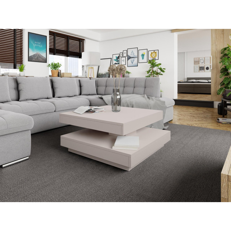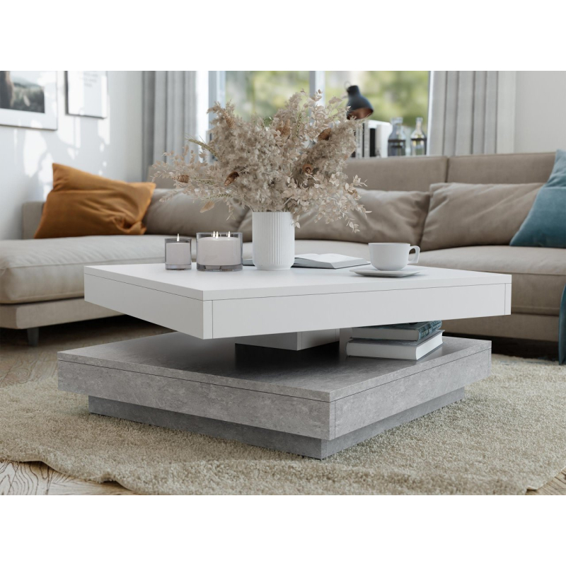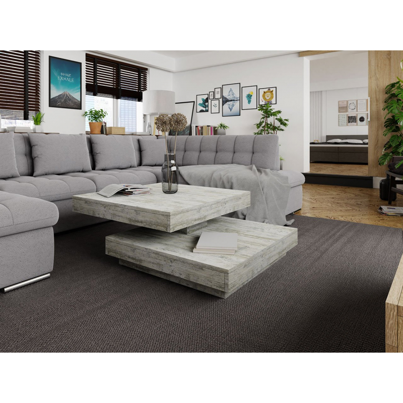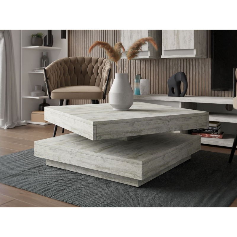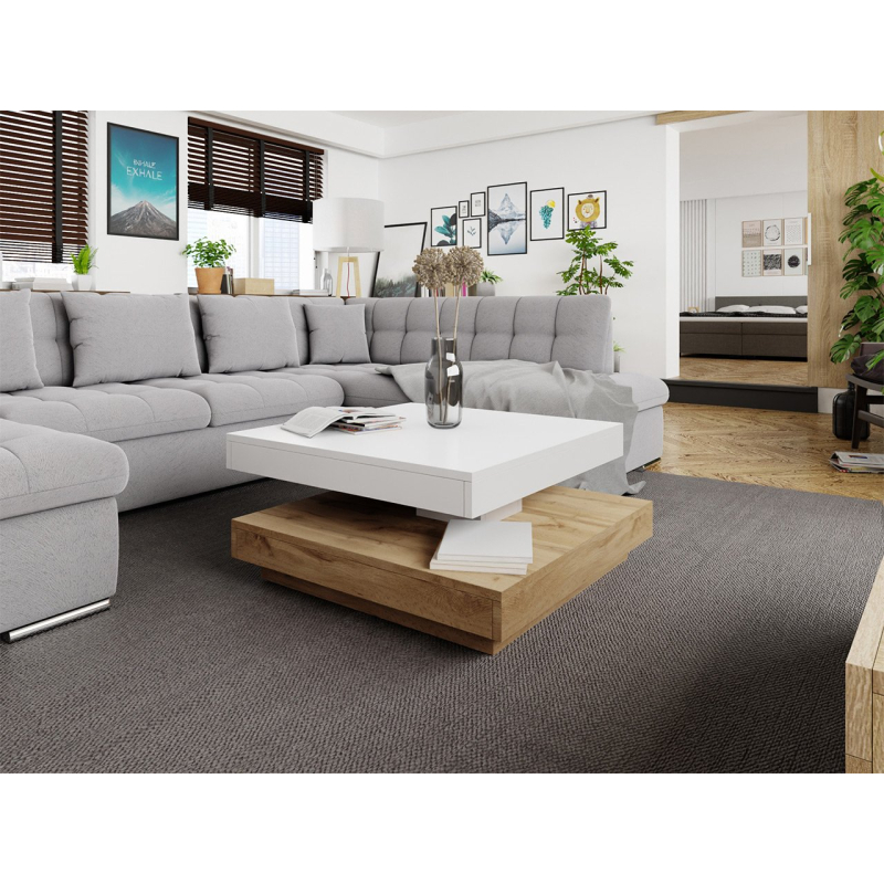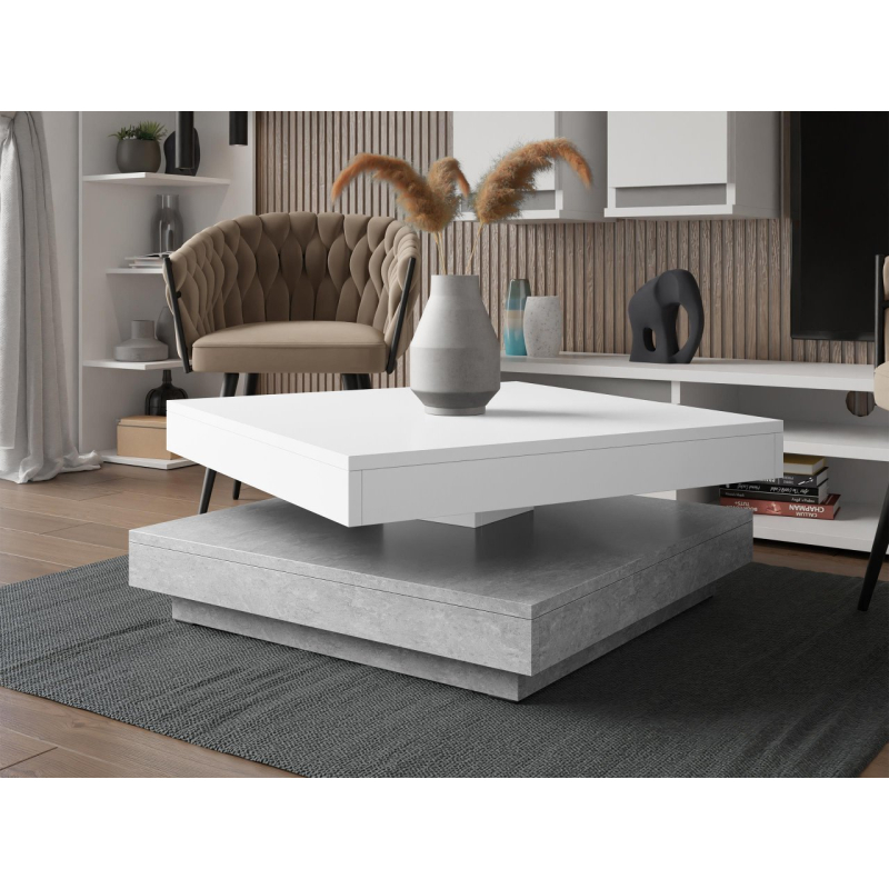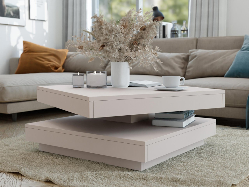 Konferenční stolek Druzjan byl vybaven dvěma užitečnými deskami. Spodní deska je stabilní základnou nábytku, zatímco uspořádání vrchního dílu je možné přizpůsobit vašim aktuálním potřebám. Mezi deskami byl použit speciální mechanismus, který umožňuje otočení horní desky stolu o 360 stupňů. Pohyblivá deska nabízí mnoho vybavení pro uživatele a zajímavý dekorativní akcent do obývacího pokoje.