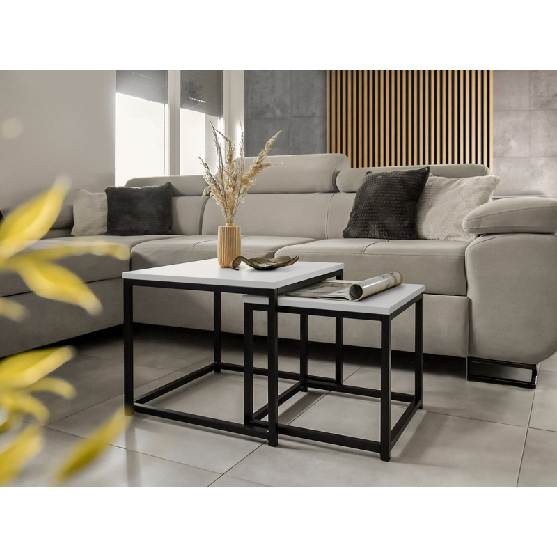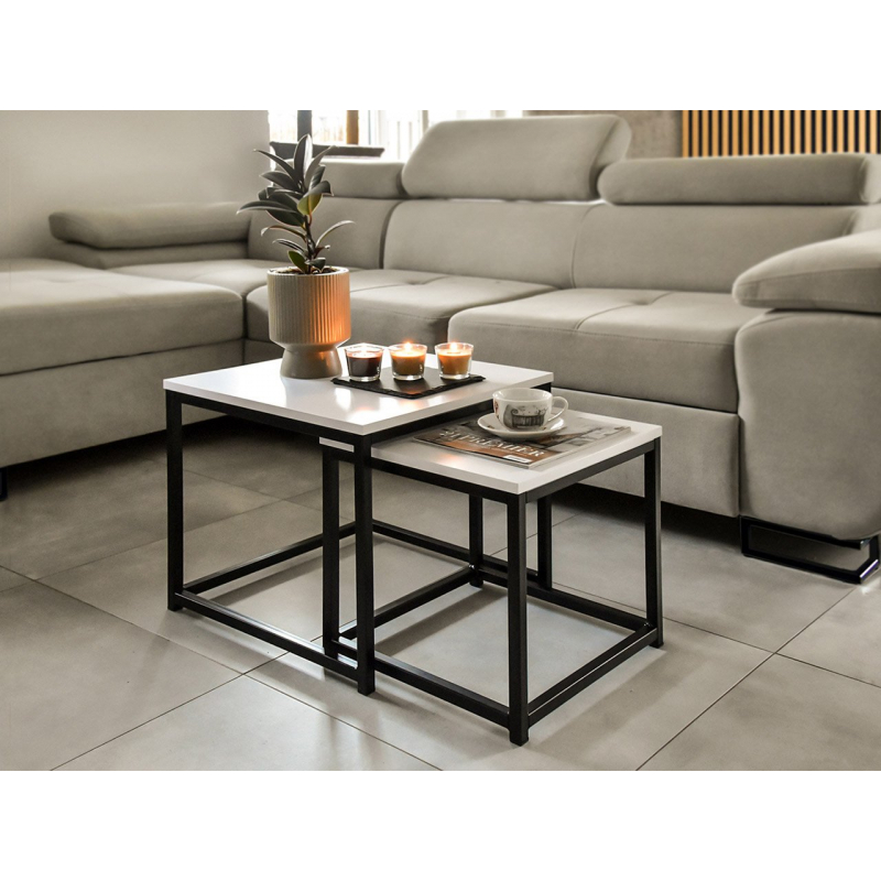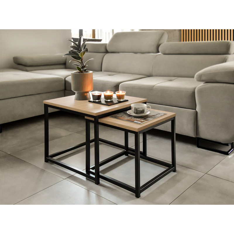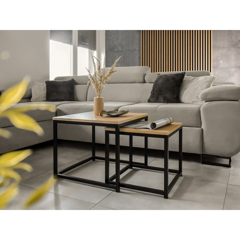 Set konferenčních stolků do obývacího pokoje je trendem, který se stal stálicí mezi moderními řešeními. Taková sada dodá vašemu domovu prostorný a inovativní vzhled. Dva konferenční stolky jsou v industriálním a loftovém stylu, ale zapadnou i do moderního interiéru. Mají pevný kovový rám a nadčasovou desku v barvě dřeva.