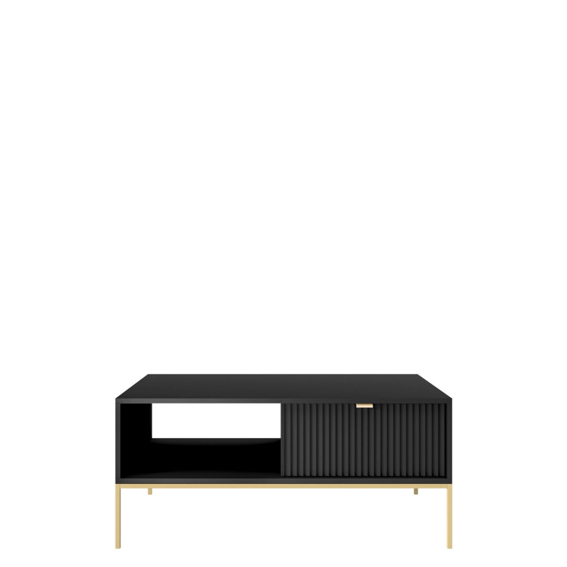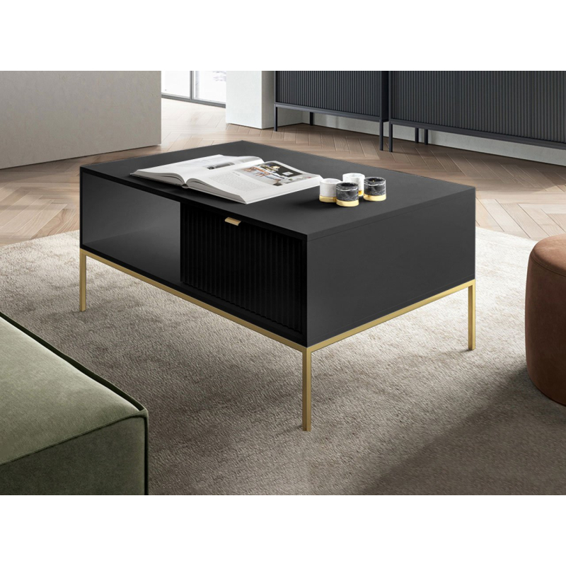 Konferenční stolek Mijano Gold ML104 je elegantní a stylový kus nábytku, který jistě zaujme milovníky moderního designu. Drážkovaná přední část působí nesmírně originálně a luxusně, zatímco zlaté detaily vnášejí do interiéru jemný půvab a noblesu. To z něj v kombinaci s precizním zpracováním nábytku činí dokonalý doplněk každého obývacího pokoje.
