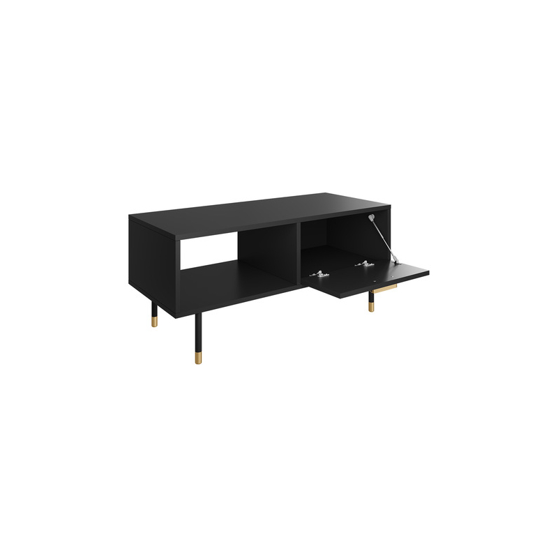 Kvalitní a praktické zpracování jsou kromě vzhledu dalšími přednostmi tohoto modelu. Konferenční stolek s policí umožňuje schovat věci, po kterých čas od času sáhnete. Na otevřenou polici pod pracovní deskou můžete umístit předměty, které stojí za to mít po ruce. Najde se tam místo na ovladač k televizi, časopis nebo knížku. Pozoruhodné jsou také vysoké nohy se zlatou úpravou. Jedná se o skvělé řešení pro snadnou údržbu pořádku na podlaze.