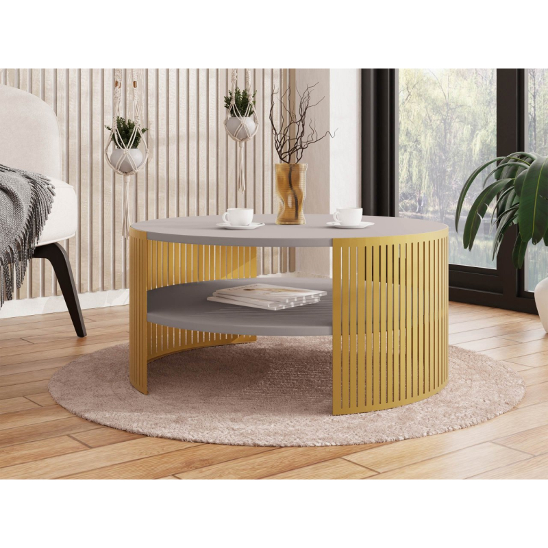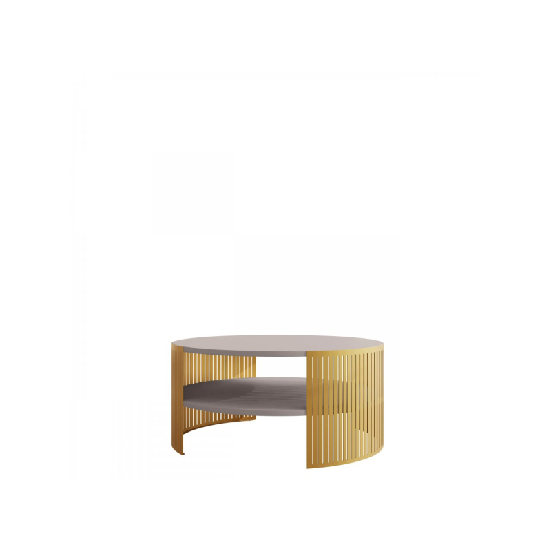 Vneste do svého prostoru rafinované kouzlo výběrem kulatého konferenčního stolku Zinzit Gold. Jedinečný základ, kterým je kovový rám, dodává nábytku stabilitu a zároveň zdůrazňuje jeho elegantní design.