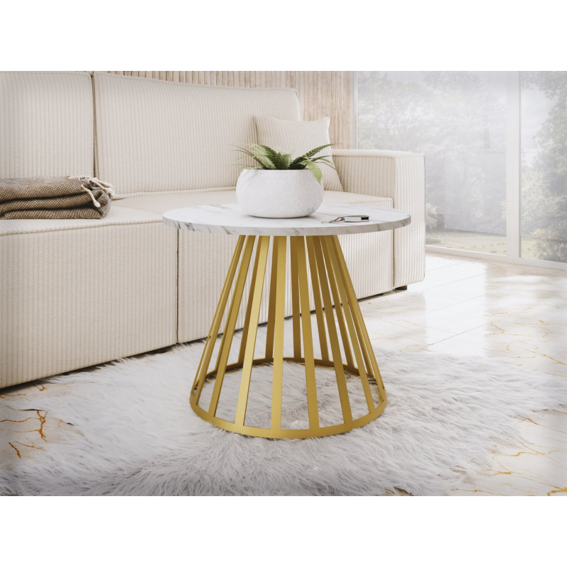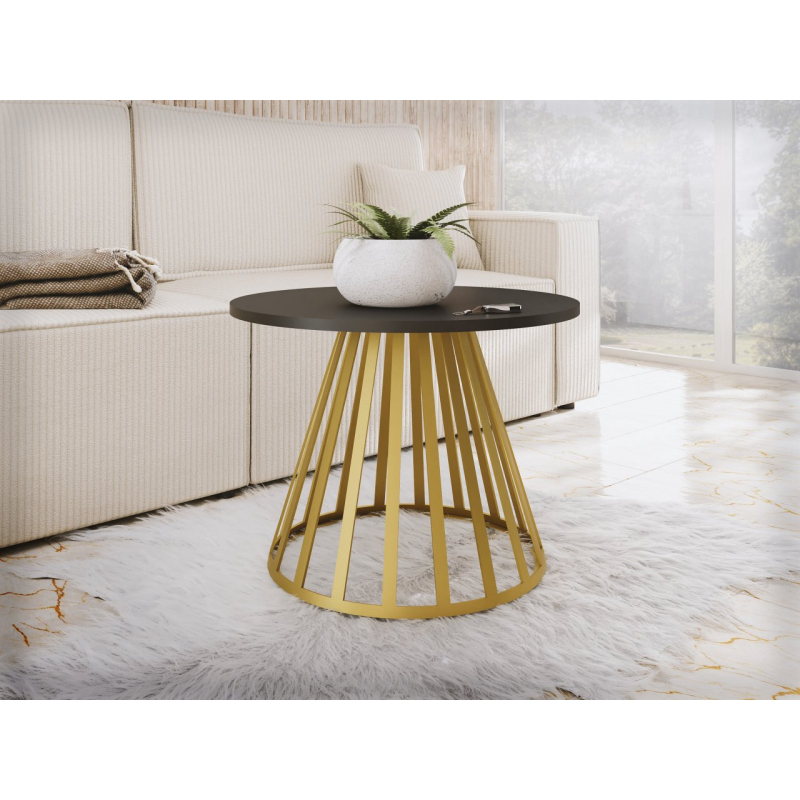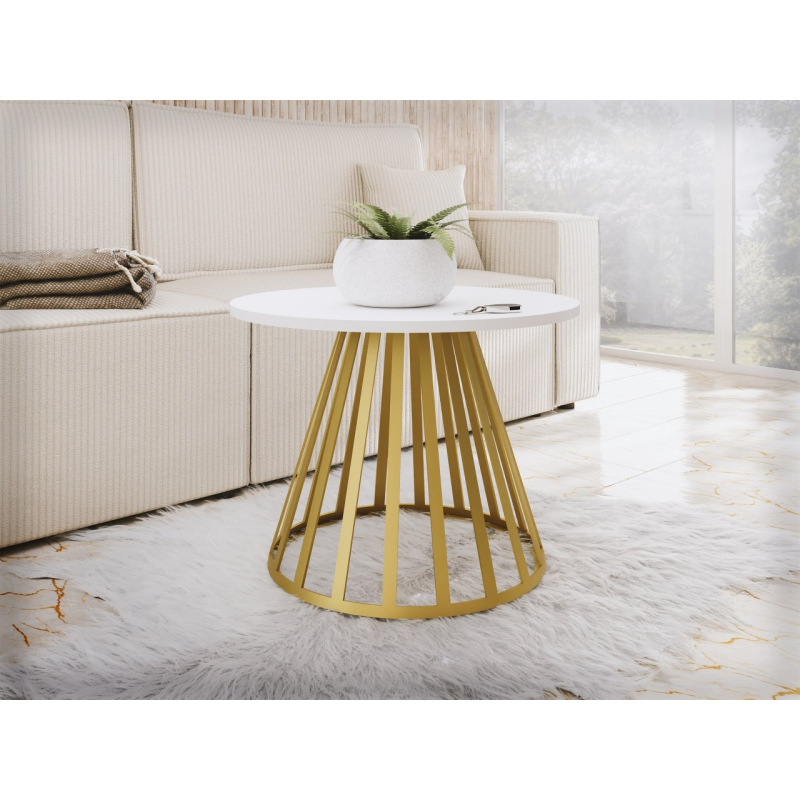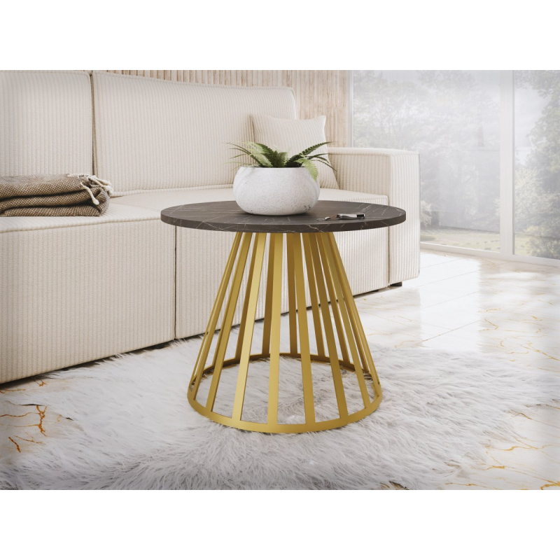 Moderní charakter malého konferenčního stolku Ogirute Mini osvěží vzhled obývacího pokoje. Originální vzhled nábytku dodává nádheru také výzdobě kavárny, mezaninu nebo kanceláře. Kouzlo stylového pomocníka je založeno na pečlivě vybraných barvách. Zlatý základ je doplněn topem v několika vzorech na výběr. Každý vzor se dokonale hodí k výraznému designu nohy.