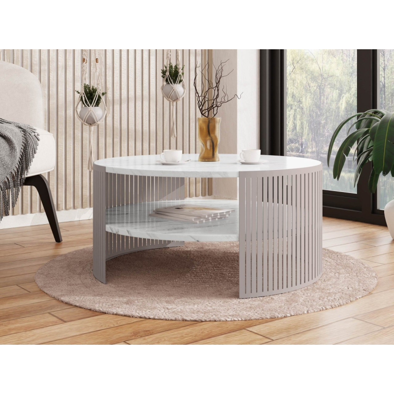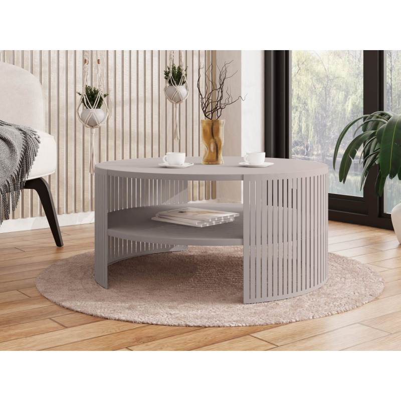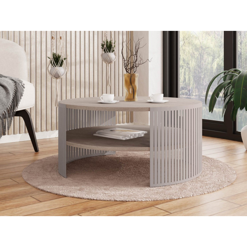 Tento kulatý konferenční stolek do obývacího pokoje nabízí dostatek prostoru k dekoraci a umístění mísy s ovocem, šálku čaje nebo talíře s koláčem. Tento model má také poličku, která je ideální pro doplňky, knihy nebo elektroniku. Vše, co potřebujete, máte na dosah ruky.