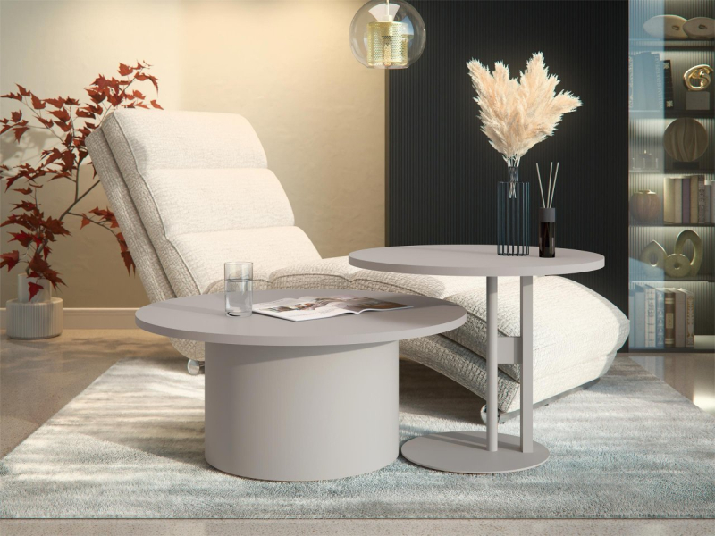 Masivní ocelová konstrukce zajišťuje stabilitu, odolnost a rezistenci vůči každodennímu používání. Dva konferenční stolky různé výšky lze umístit vedle sebe nebo samostatně a vytvořit tak praktický i estetický prostor pro relaxaci. Sada je ideální do moderních a skandinávských interiérů a nabízí pohodlné místo na kávu, dekorace nebo časopisy.