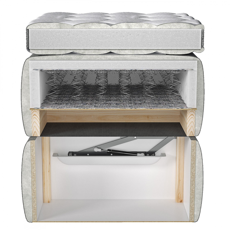 - pružinová matrace - bonnell, zapuštěná do rámu postele. Matrace poskytuje správnou oporu páteři během spánku.
