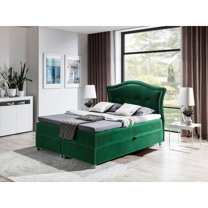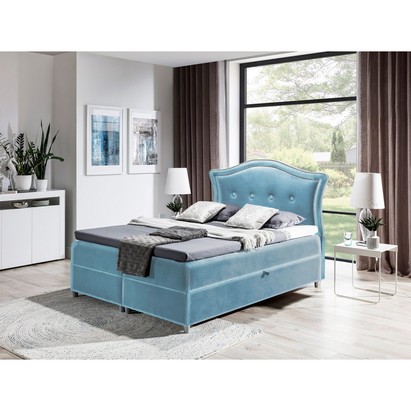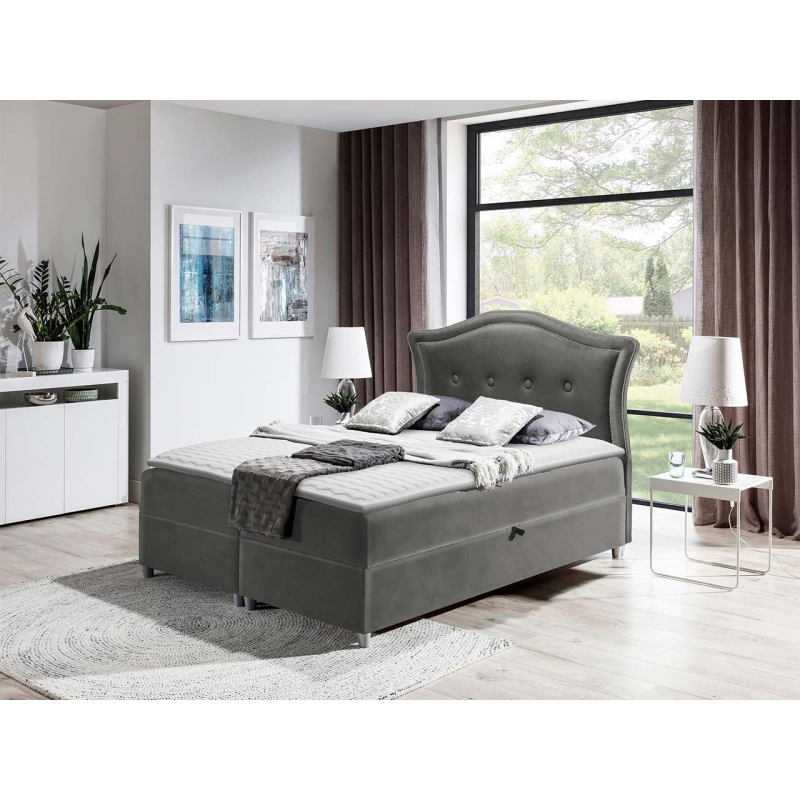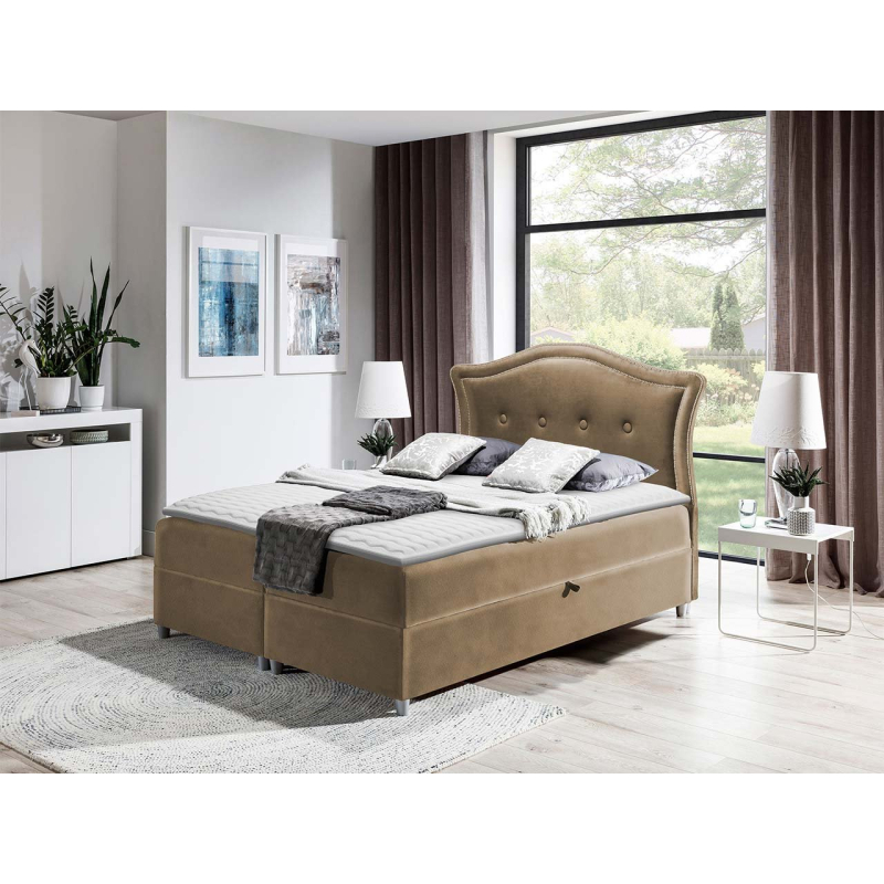 Kontinentální postel Masala je velmi elegantní model, který se dokonale hodí do ložnic ve stylu glamour. Charakteristickým prvkem této postele je zajímavý profil čela postele, který je ozdoben velkými knoflíky a ozdobným prošíváním.