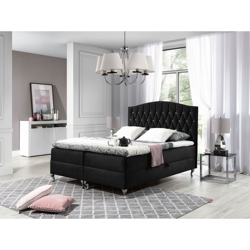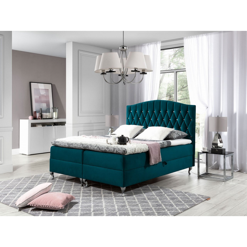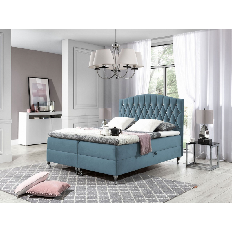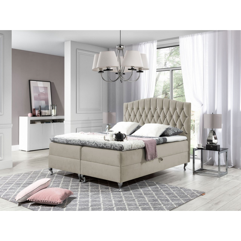 Kontinentální postel Adhelina je elegantní model, který bude perfektní pro interiéry inspirované stylem Glamour nebo New York. Tento styl postele je ovlivněn vysokým čelem postele s mírným zakřivením. Postel má navíc dekorativní prošívání s kosočtvercovým vzorem, které je ukončeno knoflíky z „křišťálu“. Elegantní styl postele doplňují nohy ve stylu Ludwik.