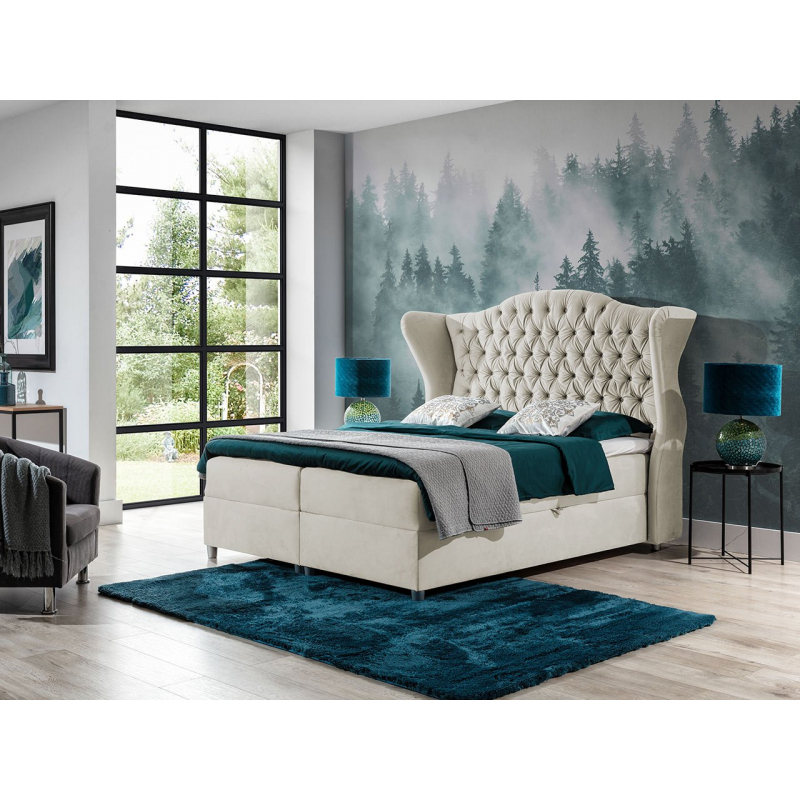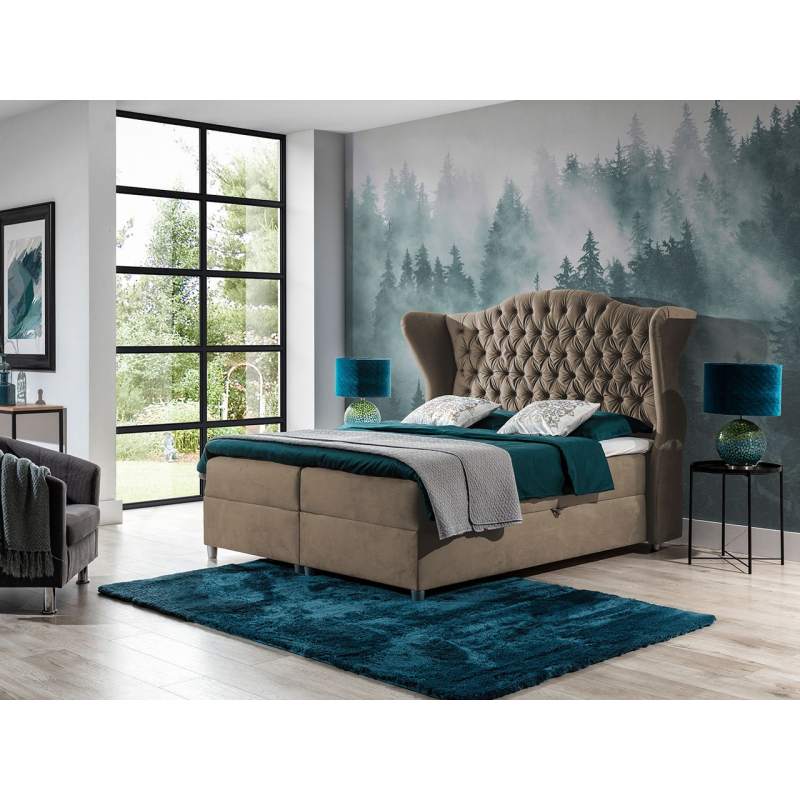 Kontinentální postel Limpopo je vybavena pevnými nohama, která dodávají celku charakter a také elegantním čalouněným čelem, které se bude skvěle hodit do dnešních aranžmá.