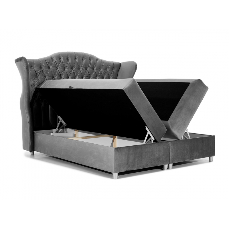 - postel standardně se dvěma úložnými prostory, po obou stranách postele, zvedání obou částí díky pružinám, díky čemuž je obsluha velmi jednoduchá a snadná, dřevěné nohy natřené stříbrnou barvou,