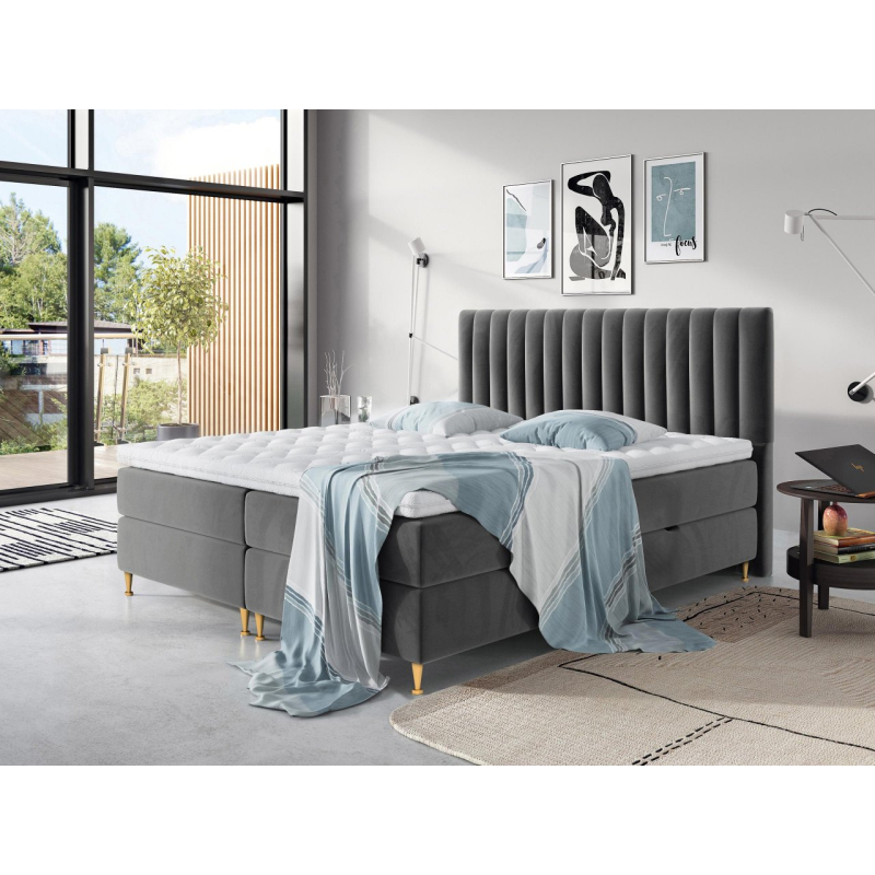 Tento model je vybaven dvěma prostornými kontejnery na lůžkoviny, umístěnými na obou stranách postele – každý uživatel má k nim volný přístup. Součástí sestavy jsou také neskutečně pohodlné bonellové matrace střední tvrdosti a topper, který výrazně zvyšuje komfort používání.