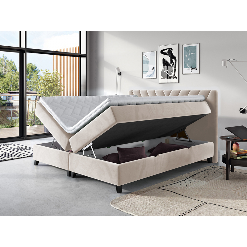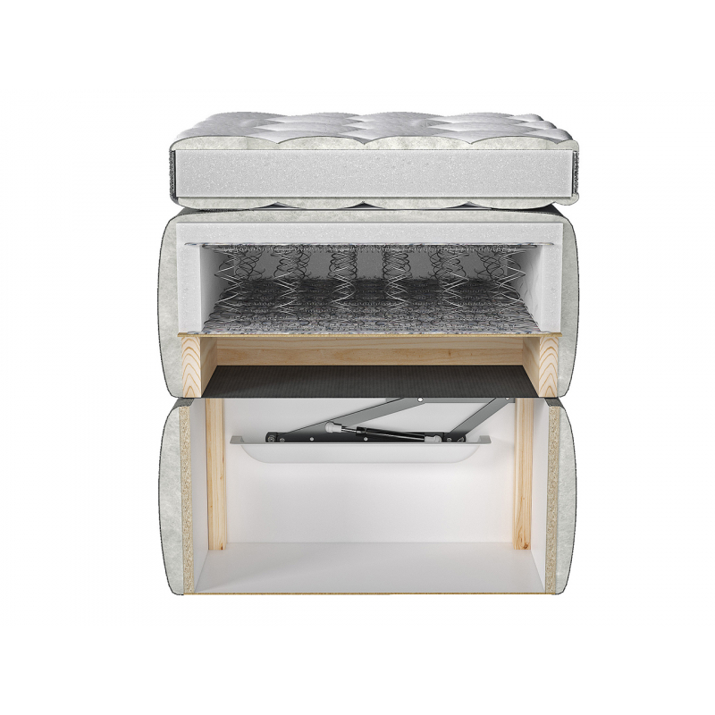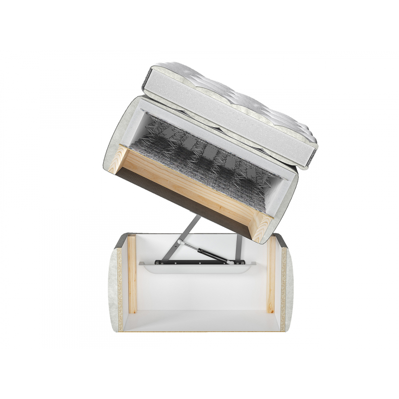 Také stojí za to věnovat pozornost struktuře samotné postele, která se skládá ze tří prvků. Úložný prostor, který vyvýšil postel, což usnadňuje každodenní vstávání. Úložný prostor je ze dvou stran a každou lze použít samostatně. Další vrstvou kontinentálního lůžka je pružinová matrace, která je zodpovědná za správnou podporu těla během spánku. Pružinová matrace je také vybavena pěnou. Posledním prvkem postele je povrchový topper, který je zodpovědný za pohodlí během spánku. Výška od země po topper je 54 cm.