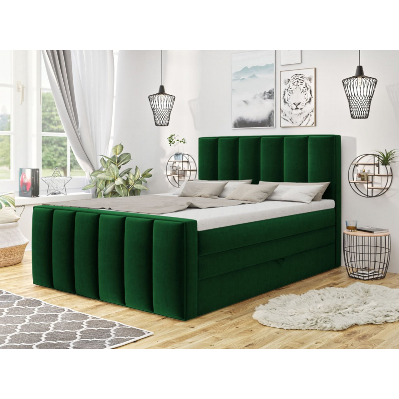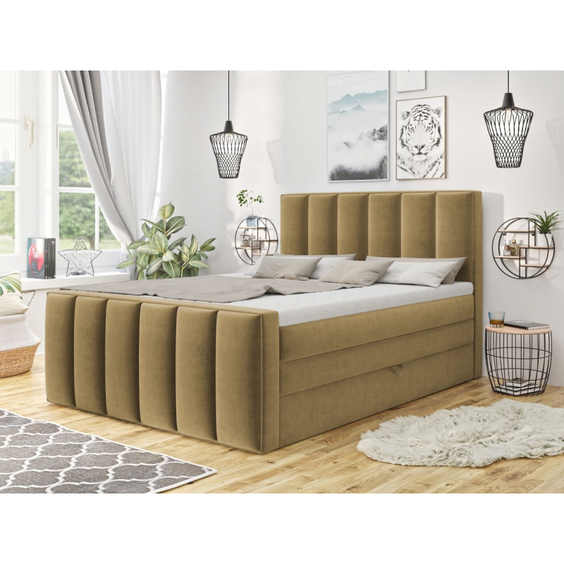 Postel Marcjalis Duo De Luxe má vysoké a čalouněné čelo se zajímavým designem. Tento design umožňuje měkkou podpěru a zároveň chrání stěnu před nečistotami. Navíc dodává interiéru úžasný charakter.