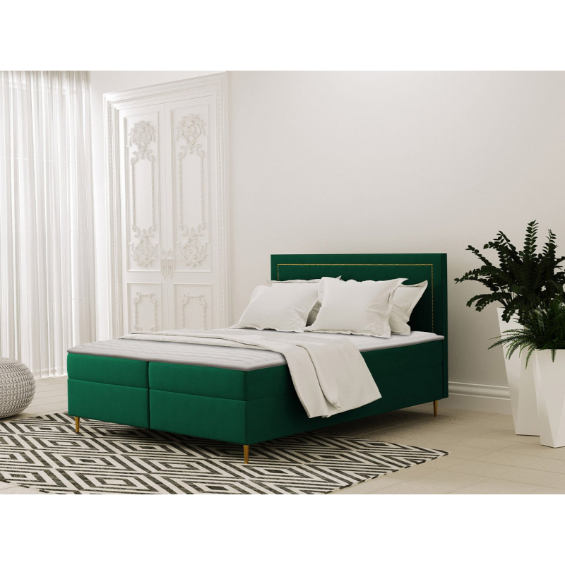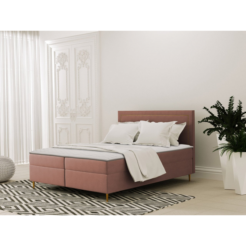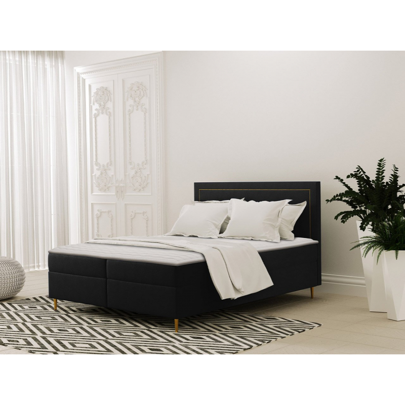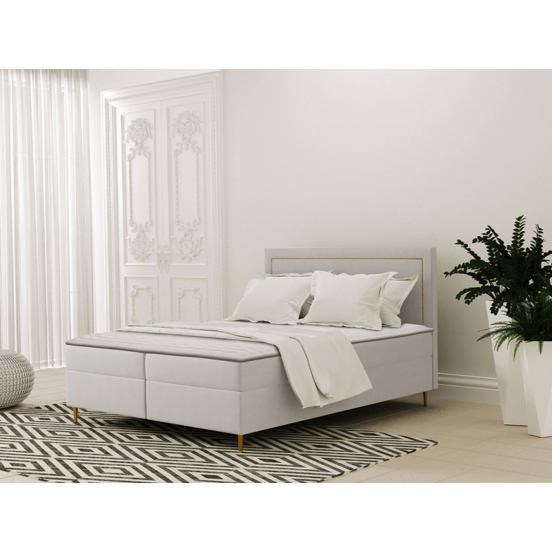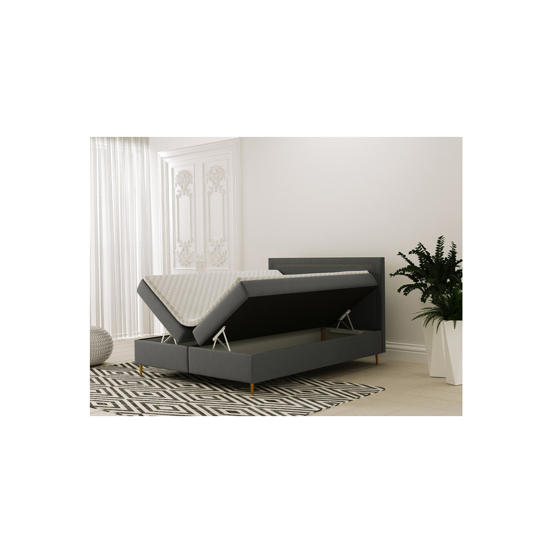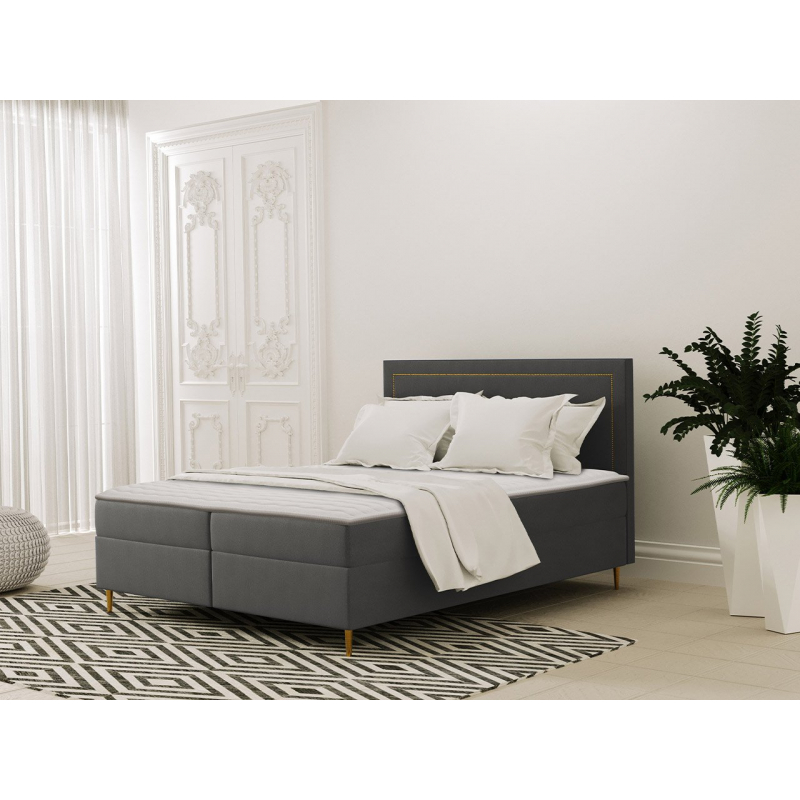 Tato postel má elegantní a měkké čelo, zdobené potahovou páskou se zlatými nýty, které celku dodávají eleganci a náročnost. Tajla je k dispozici ve třech univerzálních velikostech: 140, 160 a 180 cm.