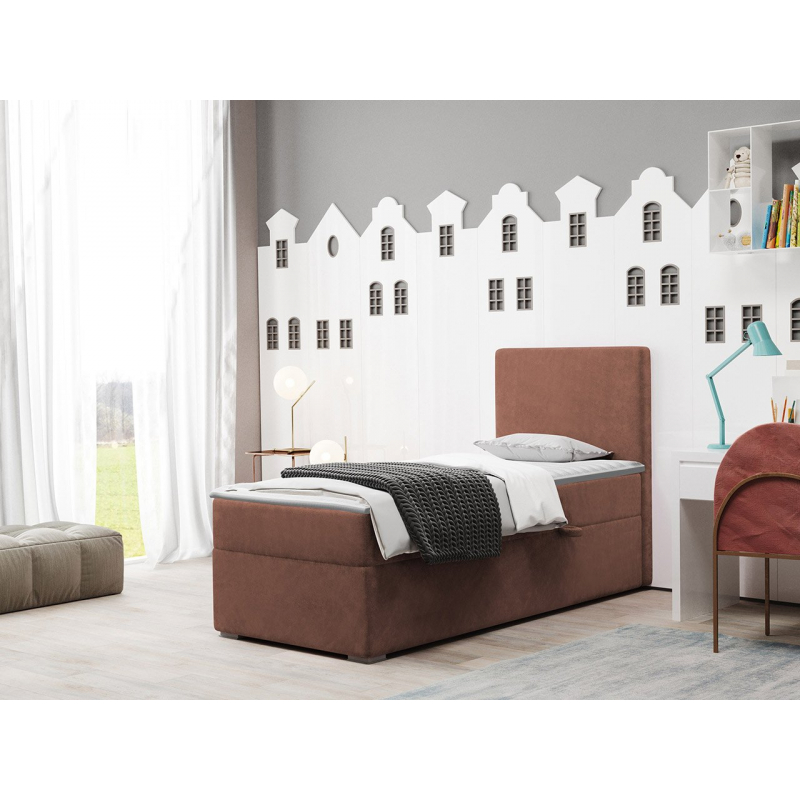 Jednolůžková kontinentální postel Kloto s kontejnerem na ložní prádlo je návrhem na vybavení jednolůžkové ložnice, jakož i pohodlným prostorem na spaní v pokoji pro mládež. Výhodou postele složené z více vrstev je zvýšený komfort. Základem je stabilní korpus, bonnellová matrace a vrchní topper.