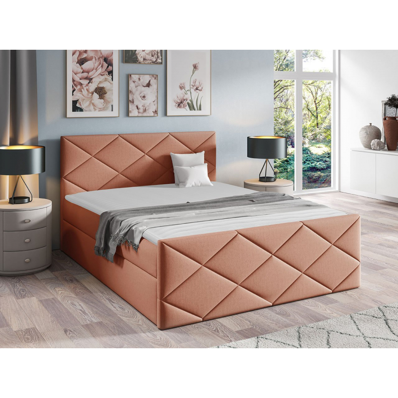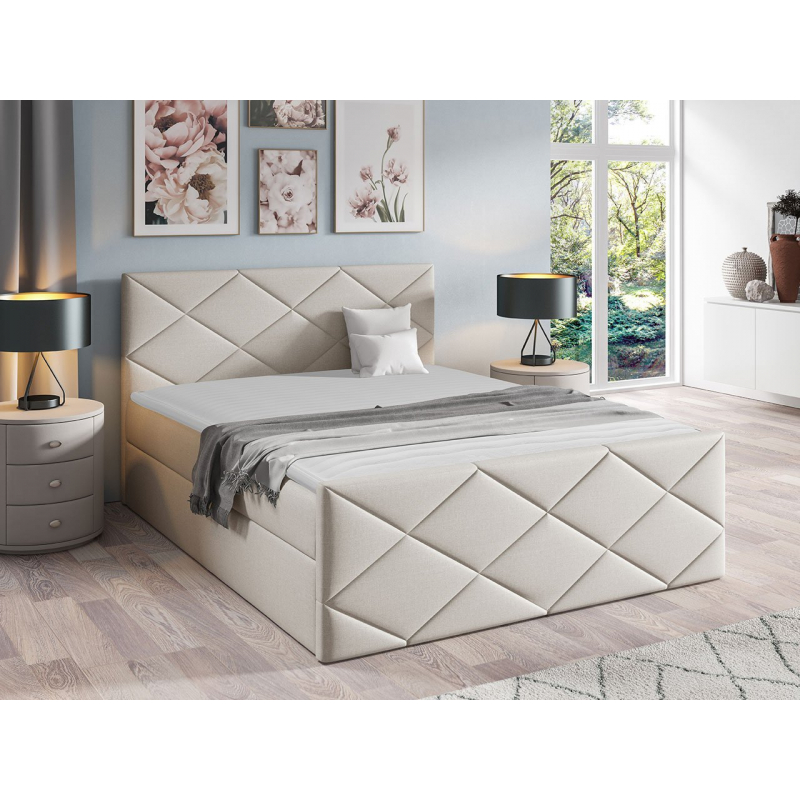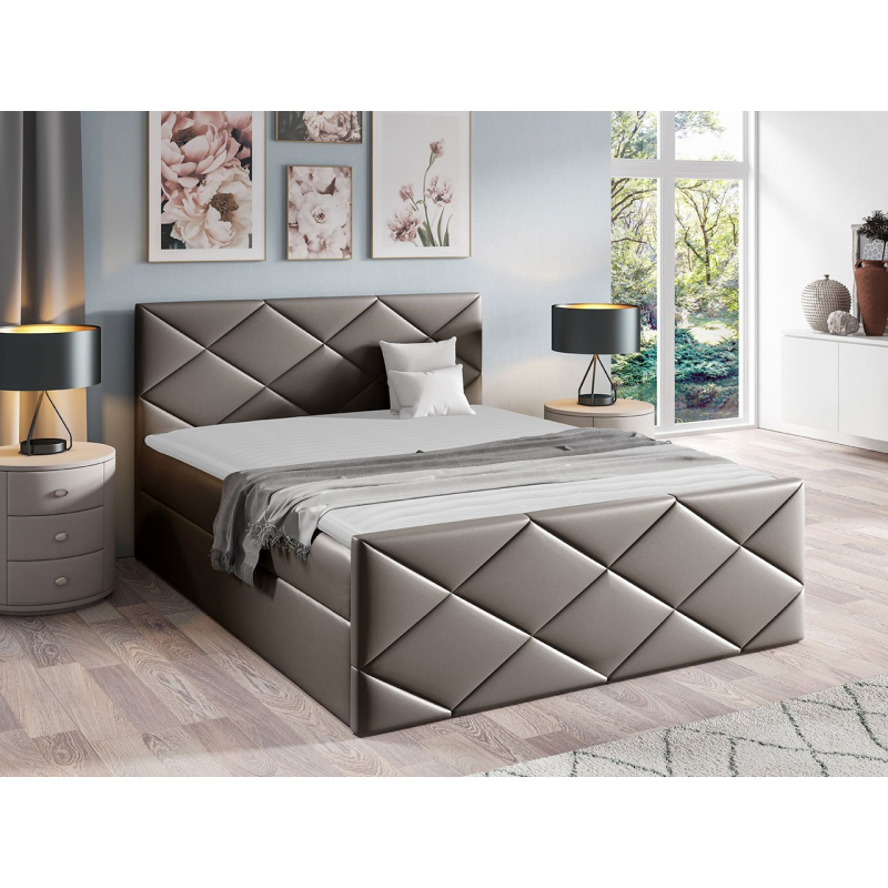 Kontinentální postel se od ostatních modelů liší zajímavým čelem a nohami, které jsou měkké, mají elegantní povrchovou úpravu a zajímavé prošívání ve tvaru diamantu.
