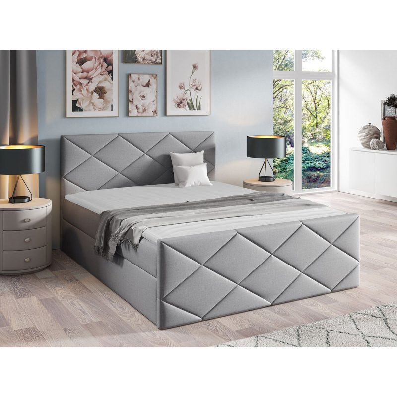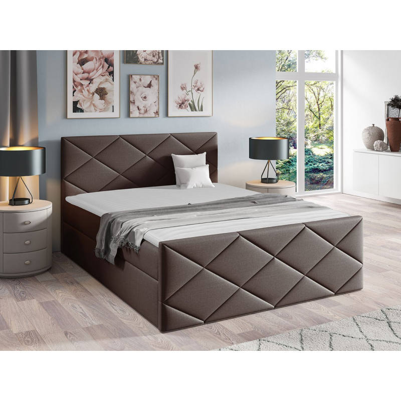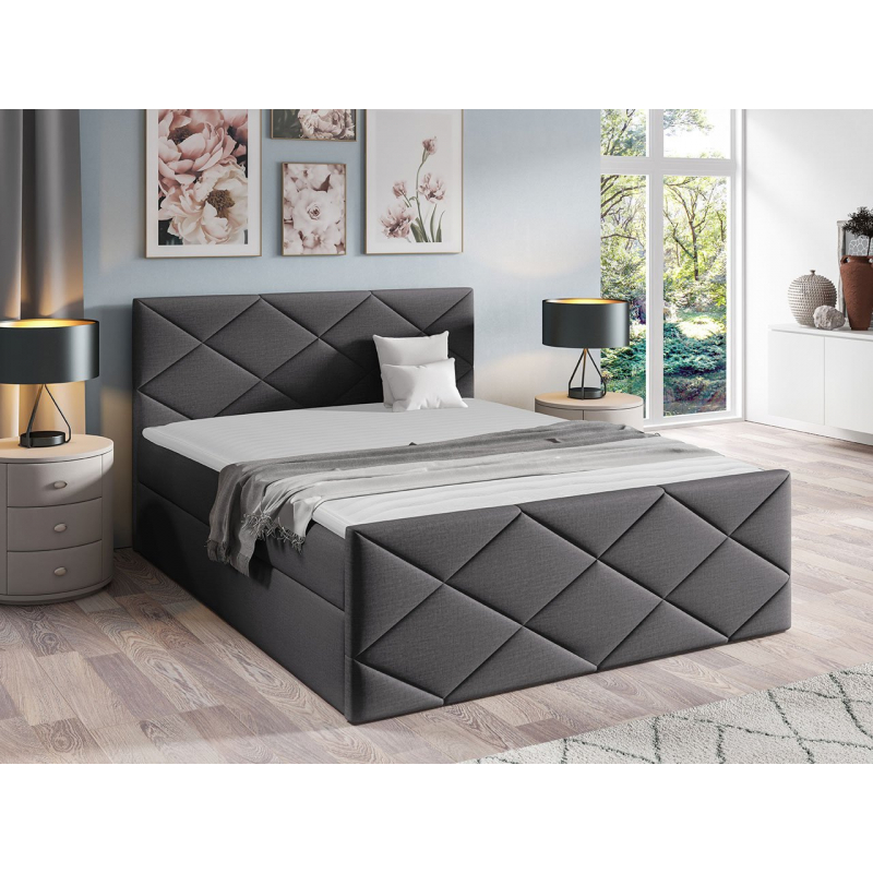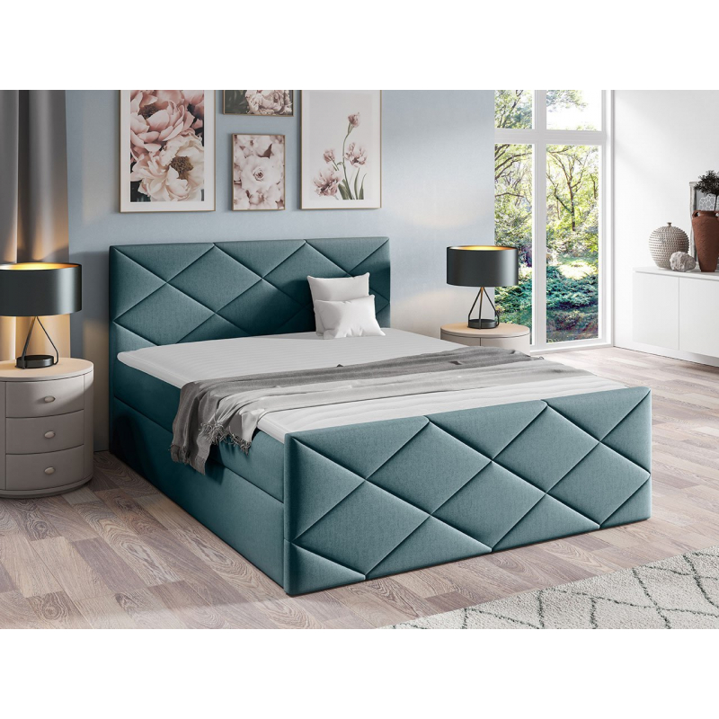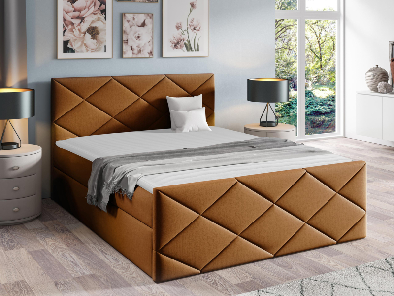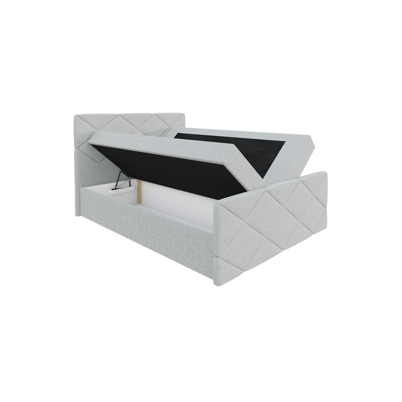 Kontinentální postel je vybavena úložnými prostory ve spodní části nábytku, bonellovými matracemi a topperem, který zvyšuje komfort používání.