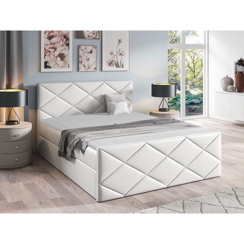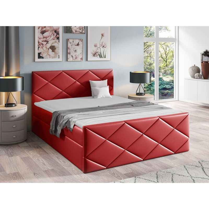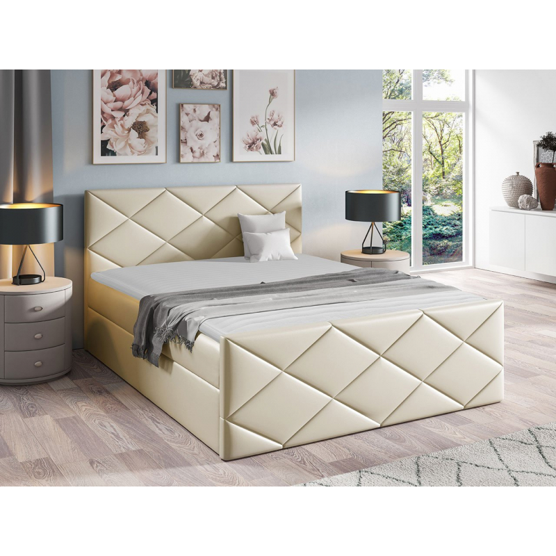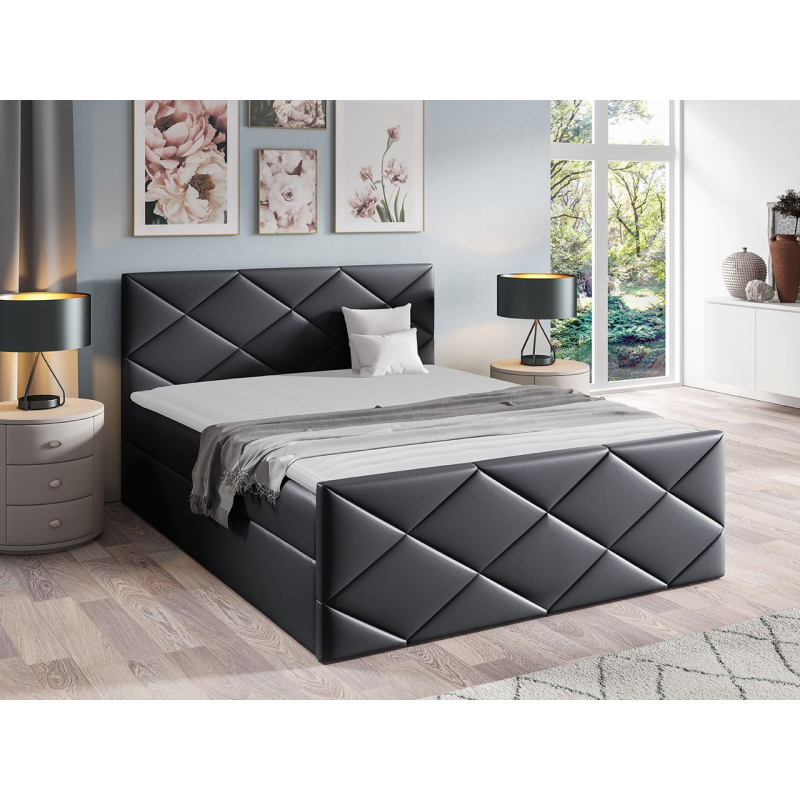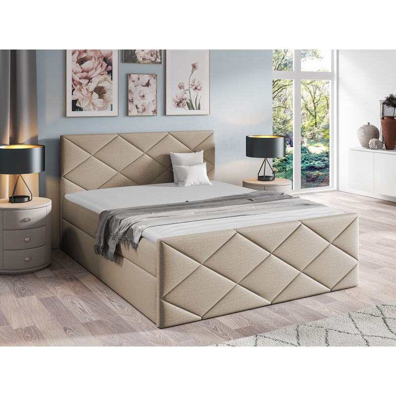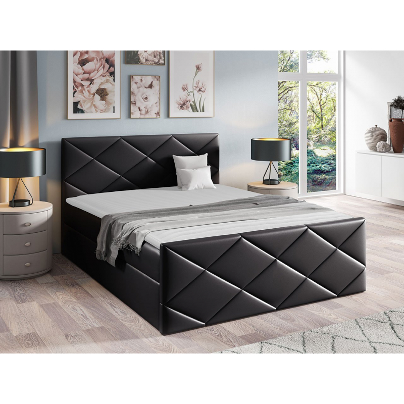 Kontinentální postel je vybavena úložnými prostory ve spodní části nábytku, bonellovými matracemi a topperem, který zvyšuje komfort používání.