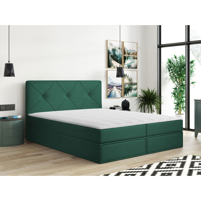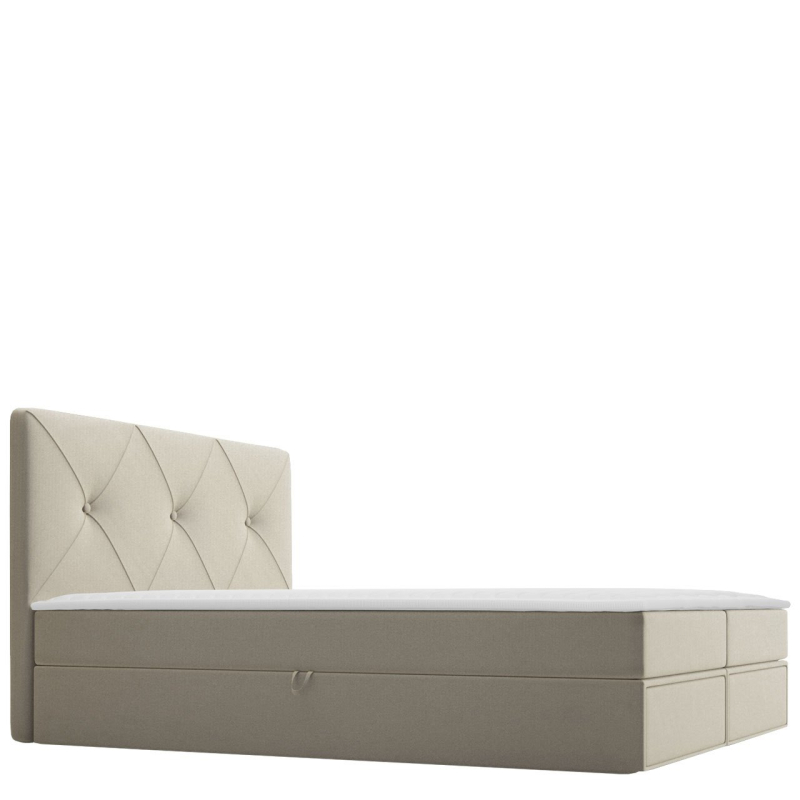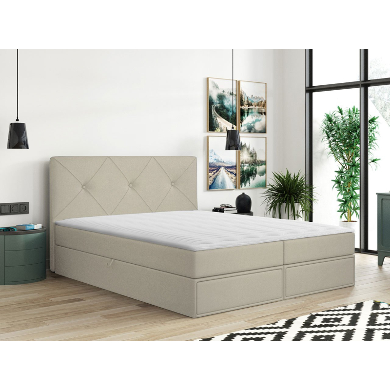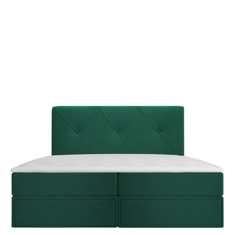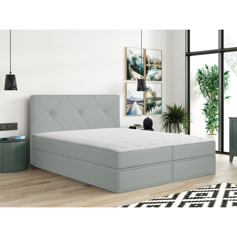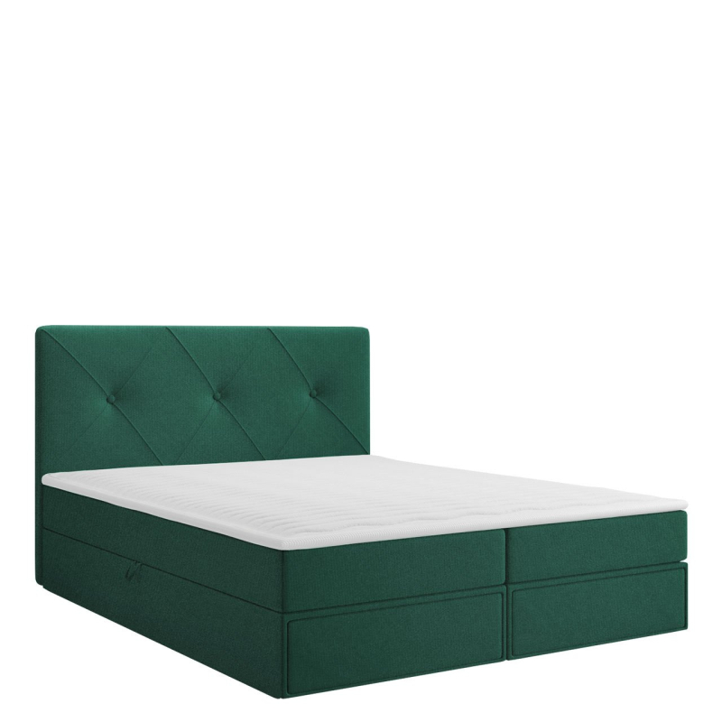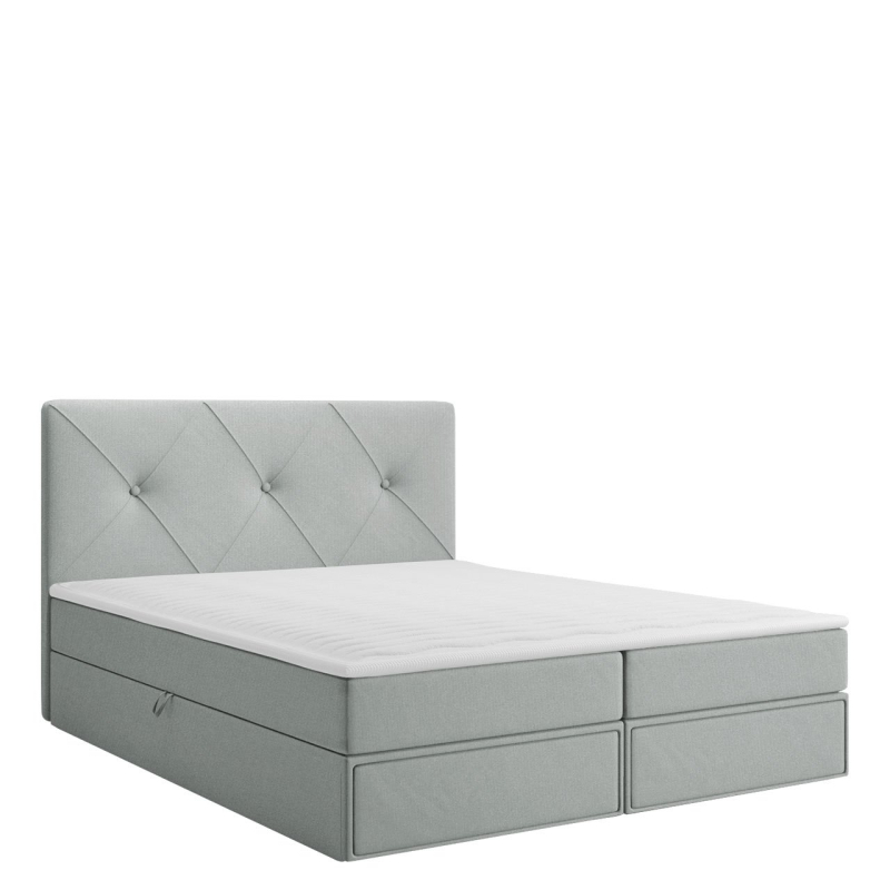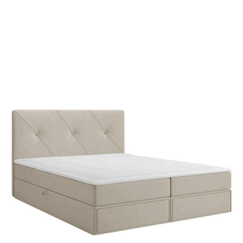 Postel je vyrobena z pevných komponentů a vybavena mnoha vymoženostmi. Má dva úložné prostory na ložní prádlo a praktické zásuvky. Jednoduché otevírání zajistí automatický zvedací systém s pružinovým pohonem. O pohodlný spánek se postarají dvě matrace: bonell pružina a topper. Celek doplňuje prošívaná opěrka hlavy.