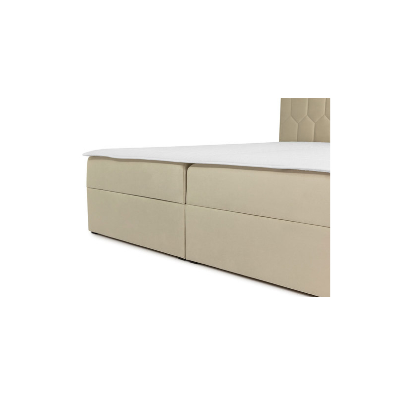 Postel Borneo M24 má mnoho výhod. Počínaje dvěma matracemi: hlavní matrací a topperem, a konče úložným prostorem na obou stranách postele. Topper je navíc vybaven 4 pevnými upevňovacími gumami, které zabraňují jeho pohybu. Nejzdobnějším prvkem tohoto modelu je čelo postele. Příjemná látka s hlubokým prošitím poskytne pohodlnou oporu a ozdobí vaši ložnici.